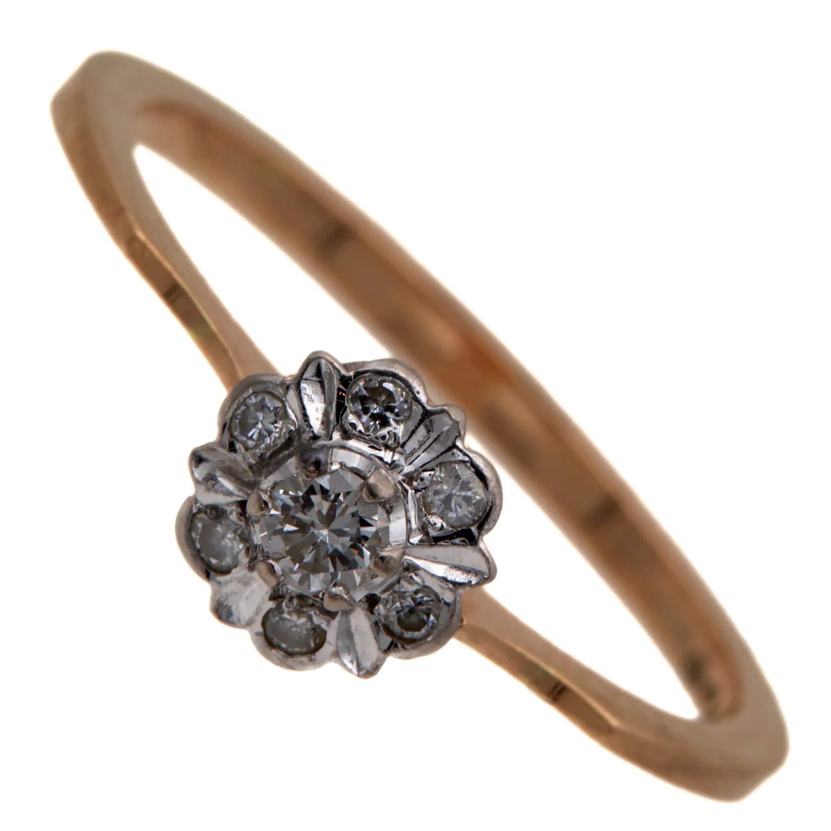 Timanttisormus 1xn.0.10ct 6xn.0.03ct, koko 18½, rungossa käytön jälkiä, 585, Paino: 2,1 g