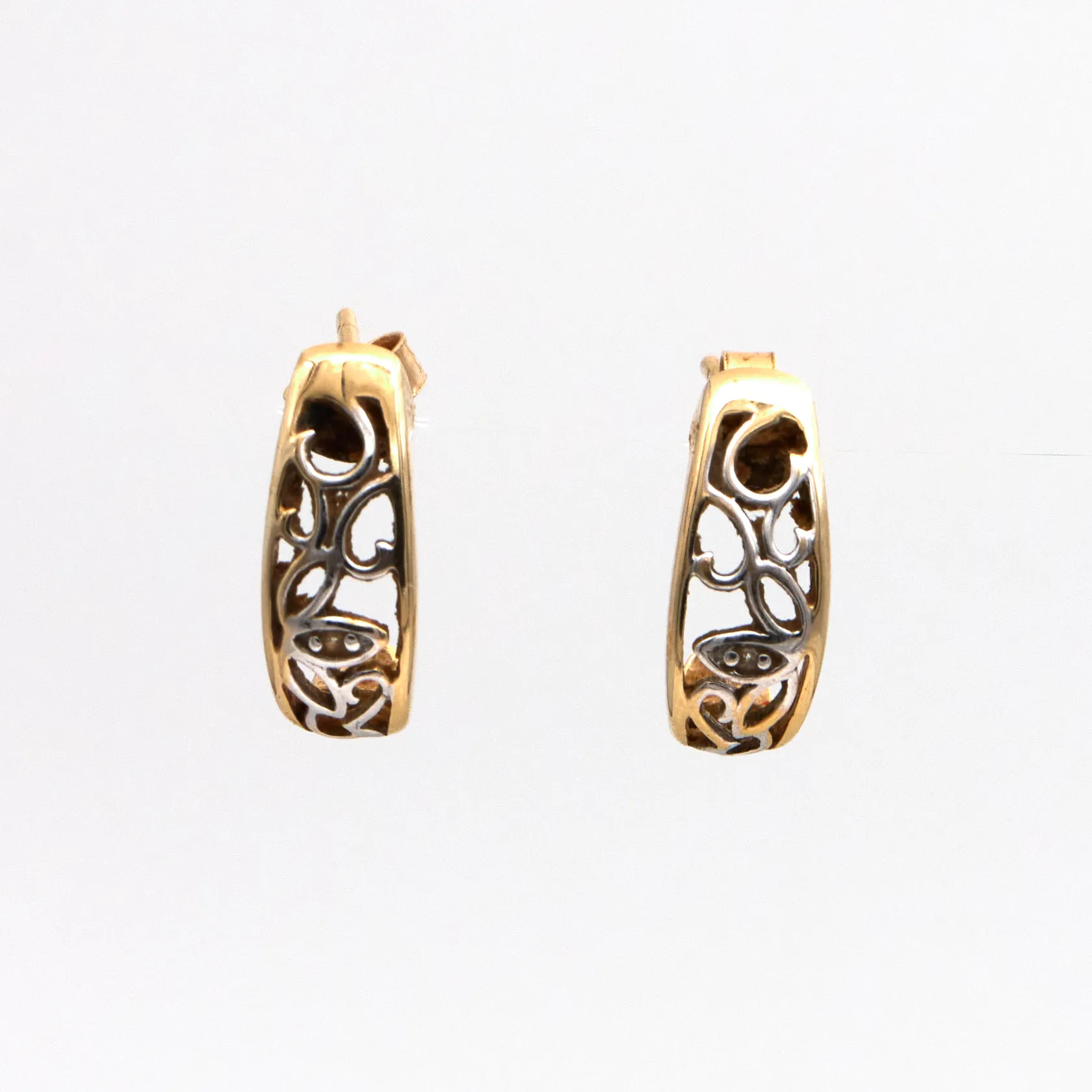 Korvakorut, korkeus 15mm, kelta- ja valkokulta, 585, Paino: 2,6 g