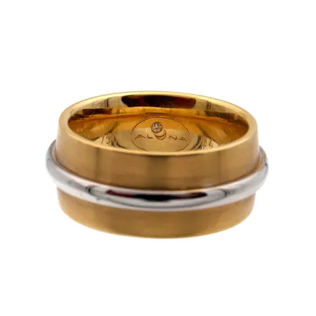 Sormus timantilla 1xn0.005ct, koko 17¼, timantti sisäpuolella, 750br kelta- ja valkokulta, Paino: 14,4 g