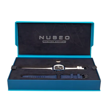 Teräsrannekello Nubeo, Magellan, Limited edition 40/400, Mega-Quartz, NB-6024, taulun mitat 48-51mm, kumiranneke, vaihtoranneke sininen, laatikko.