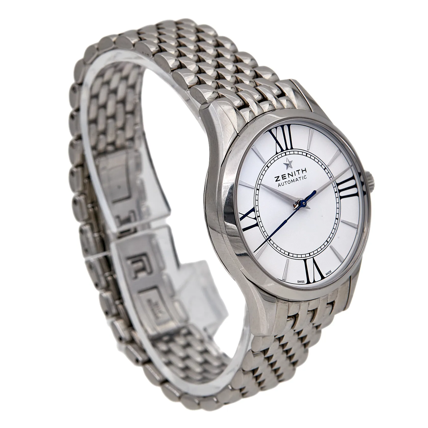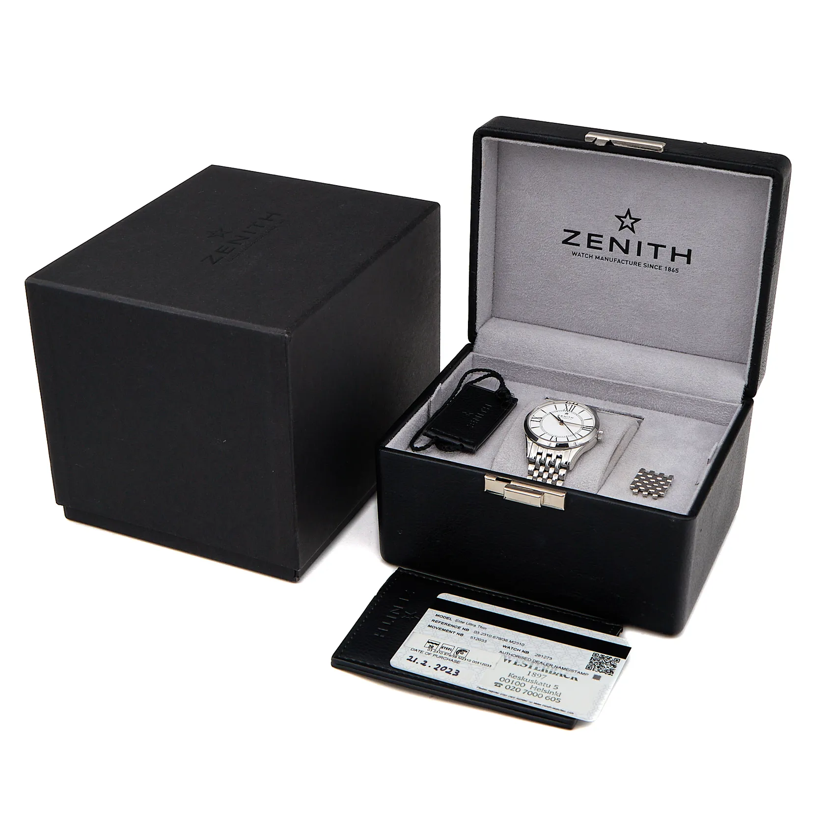 Teräsrannekello, Zenith, Elite Ultra Thin, automaatti, rungon Ø 34mm, ref. 03.2310.679/38.M2310, rannekkeen pituus 170mm, jatkopalat, laatikko ja takuukortti (Westerback 2/2023)