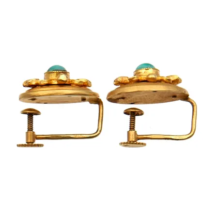 Turkoosi-korvakorut, korkeus 17mm, leveys 13mm, 1970, Helsinki, 585br, Paino: 4,7 g