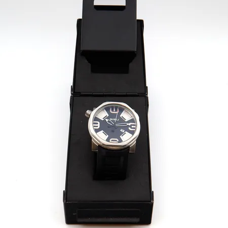 Teräsrannekello SISU, BRAVADO BQ4-50-RB CROSS, kumiranneke, quartz, "swiss movement", pituus 150-220mm, Ø 50mm, säilytysrasia.