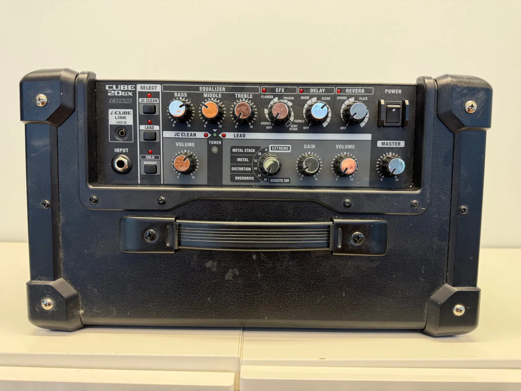 Vahvistin Roland Cube-20GX, 24W, sarjanumero A5D1095 P ja virtajohto. Ei lähetetä