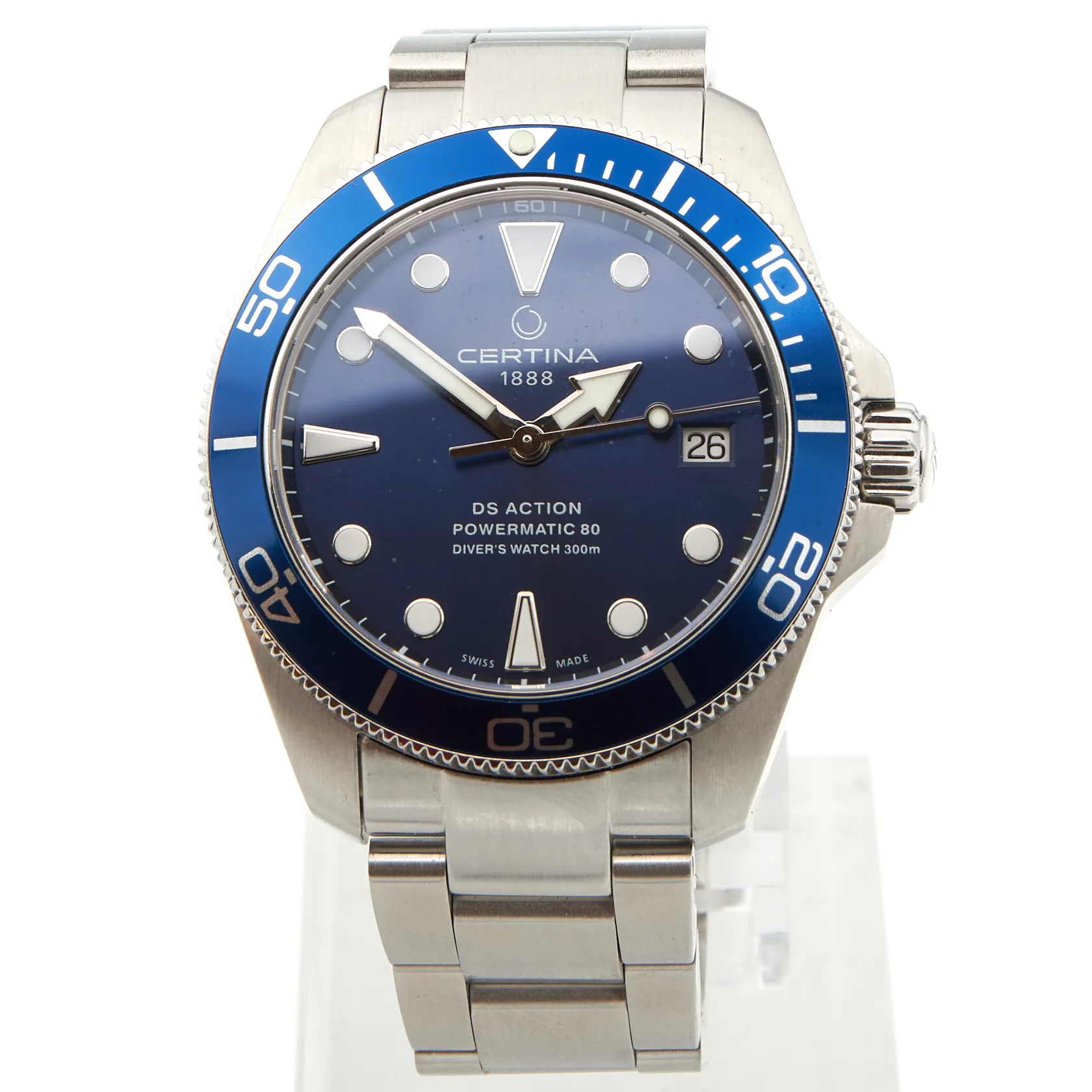 Teräsranekkello Certina 1888 DS Action Powermatic 80 divers watch 300m, automaatti, Swiss Made, ref: C032.807.11.041.00 , S:N WV6PKM9NX, rungon Ø38.5mm, teräsrannekkeen pituus 200mm, rannekkeen jatkopalat, laatikko ja paperit, paperit päivätty 3.11.2021