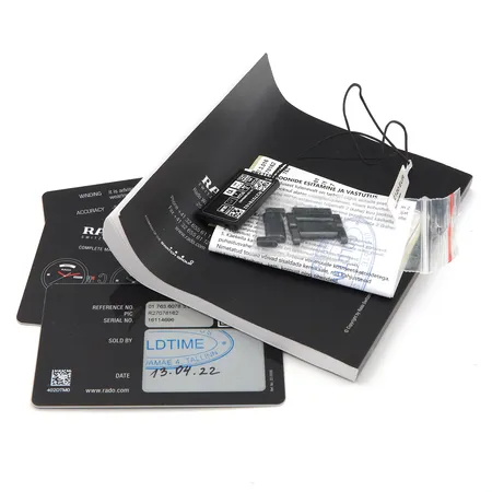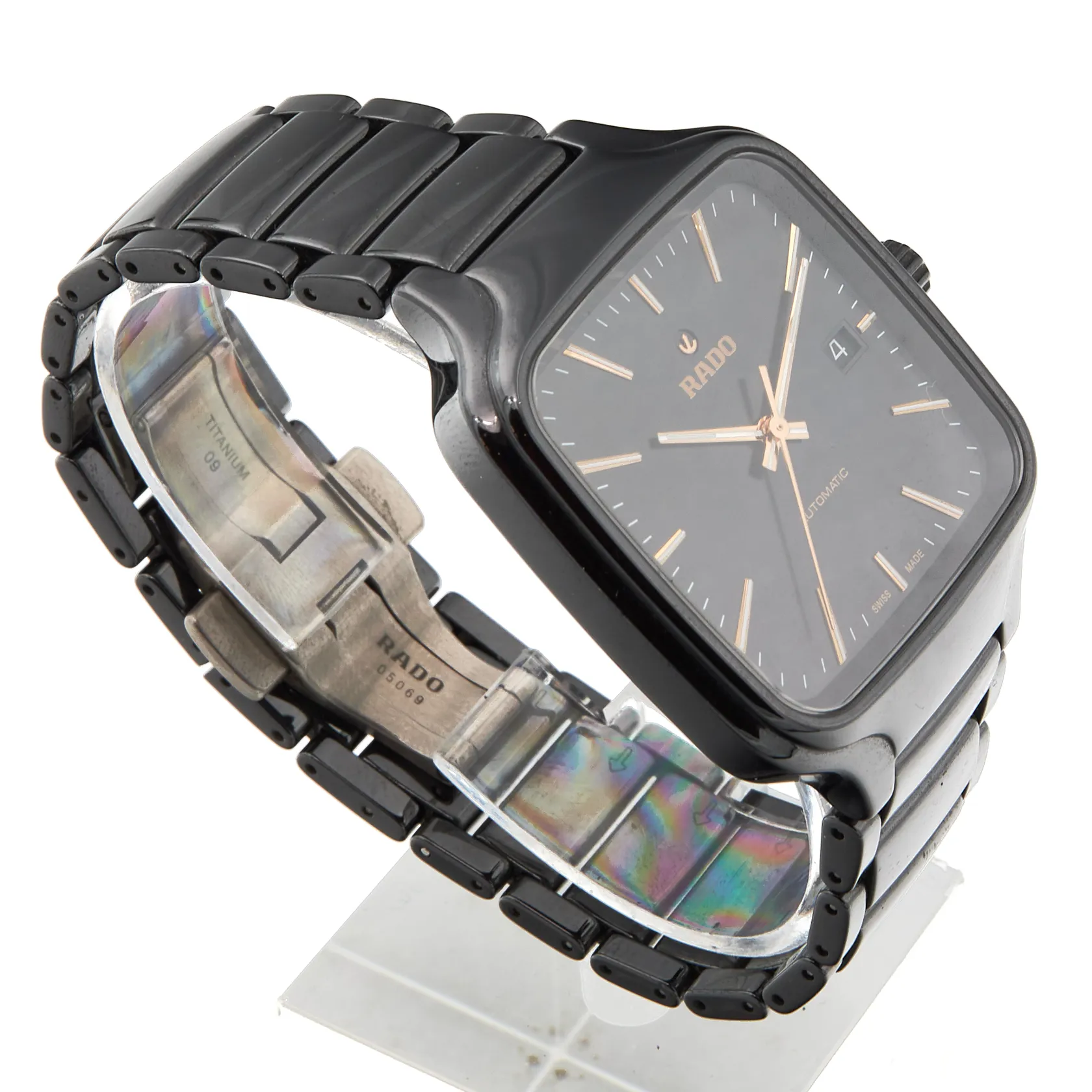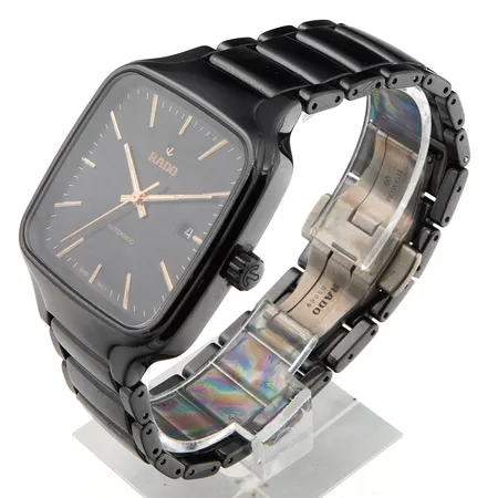 Rannekello Rado True Square , keraaminen/titaatinen, automaatti, Swiss Made, rungon mitat 37.5x44mm, ref: 01.763.6078.3.016, S:N 16114696, rannekkeen pituus 195mm, rannekkeen jatkopalat, laatikko ja paperit kirjattu 13.04.22