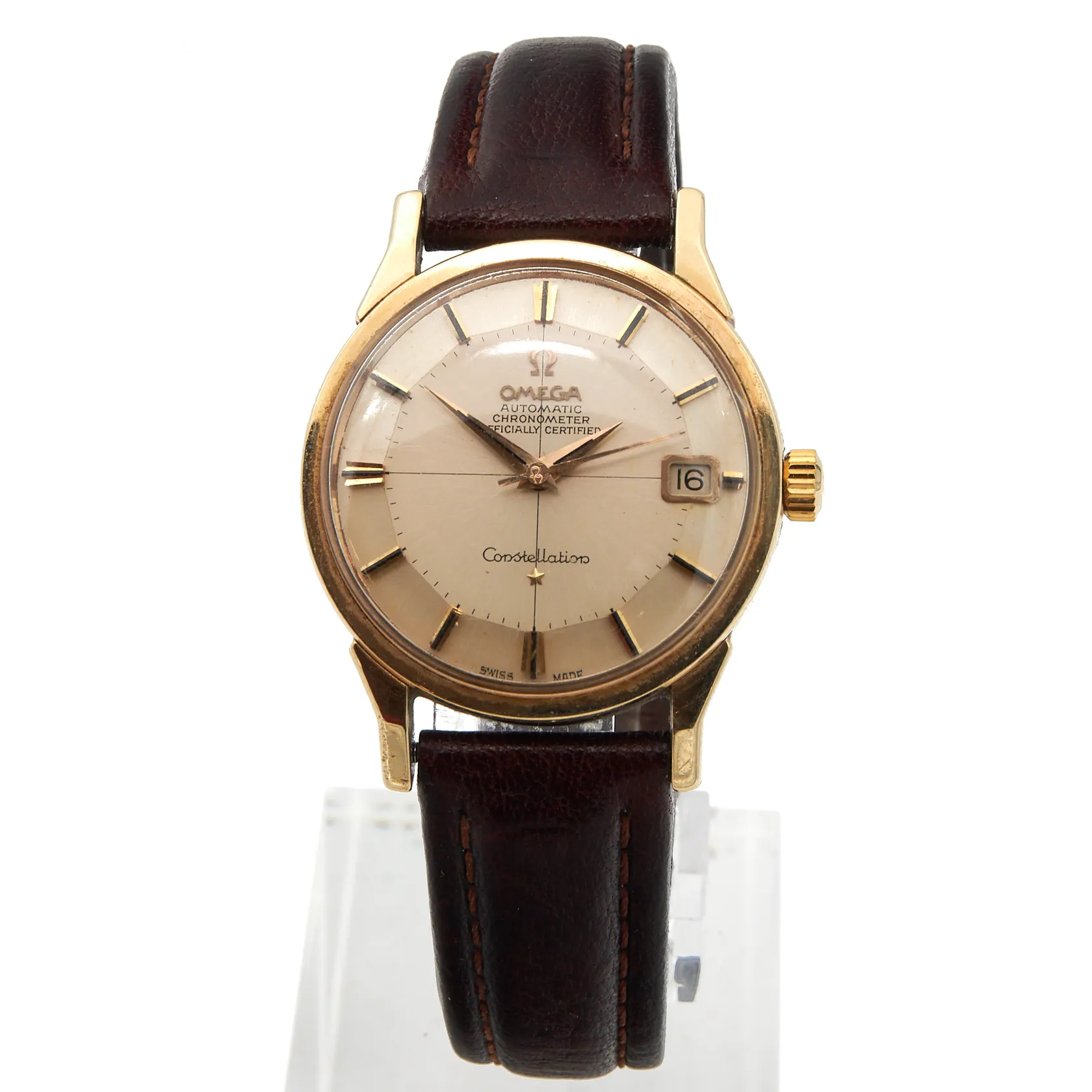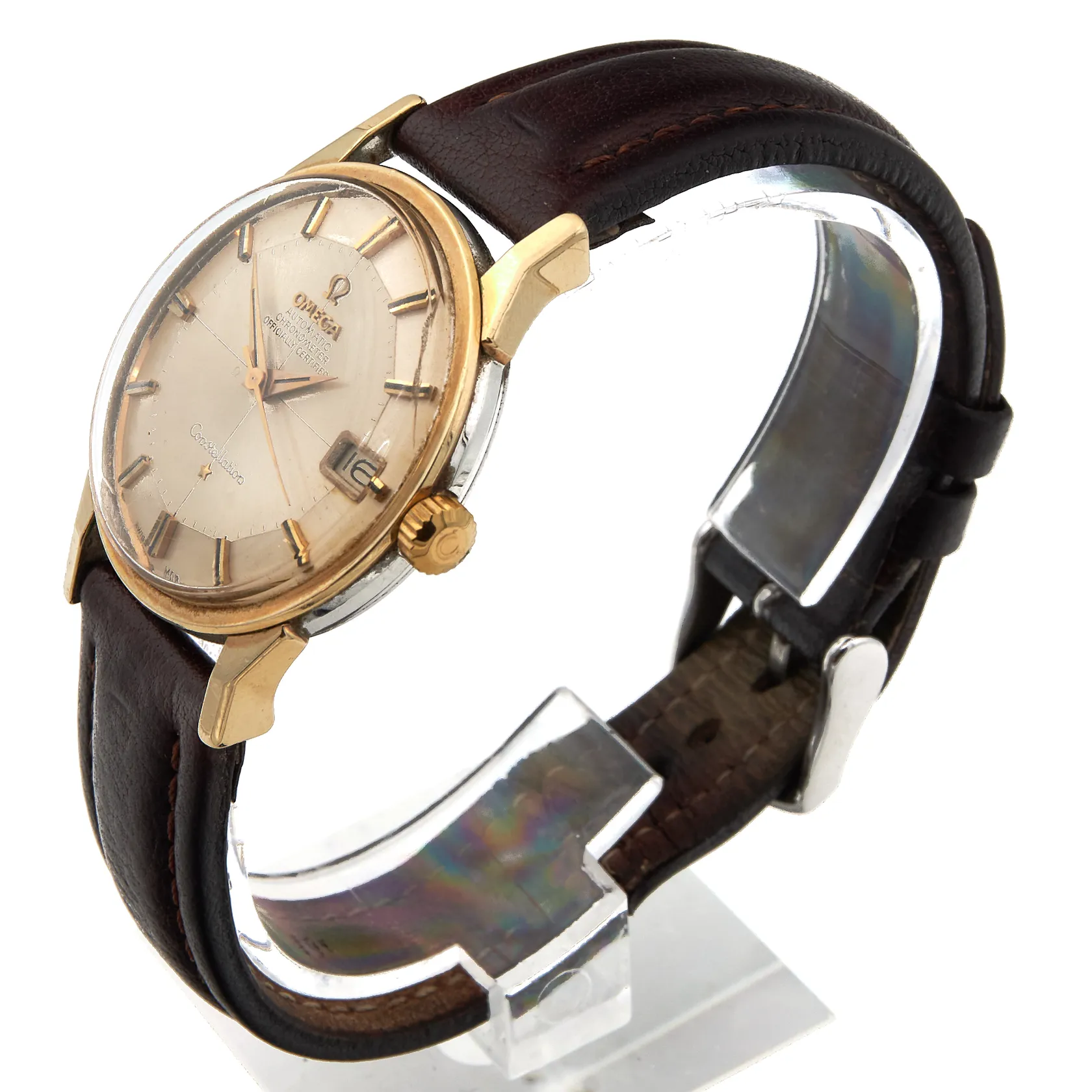 Teräsrannekello Omega Constellation Automatic Chronometer, Pie- Pan caliber 561, Swiss Made, automaatti, käytön jälkiä, rungon Ø33.5mm, viallinen nahkaranneke, rannekkeen pituus 185-230mm, ranneke ei alkuperäinen, *kuvausta muutettu 24.3.2026* Paino: 0 g