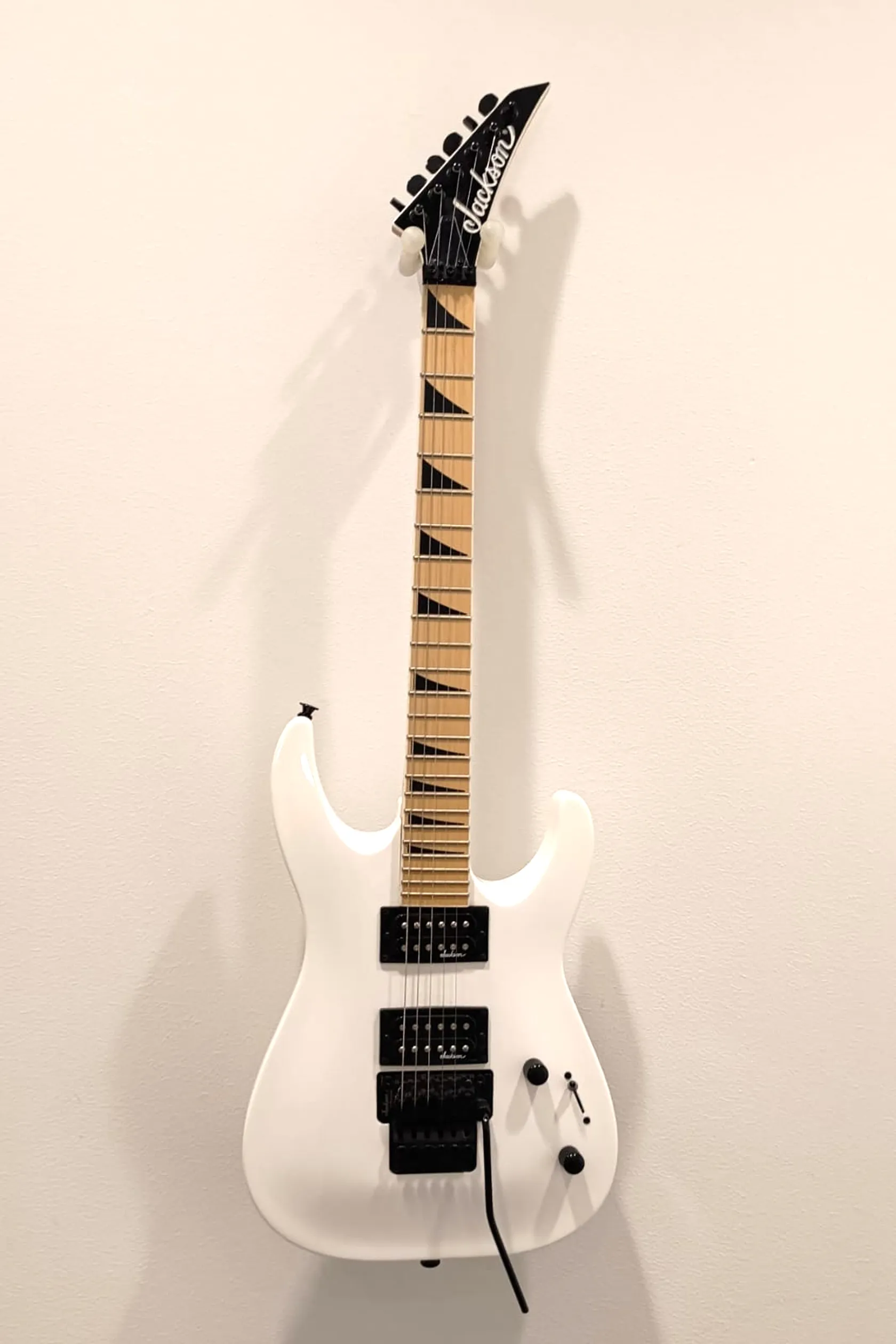 Sähkökitara Jackson CWJ, S:N 2366373, crafted in China, kakdi humbucker mikrofonia, volume, tone, kolme portainen mikrofonivalitsin, yksi kieli poikki, pieniä käytön jälkiä, pehmeä laukku Nouto ainoastaan myymälästä. Ei lähetetä. Lähetetään postipakettina.
