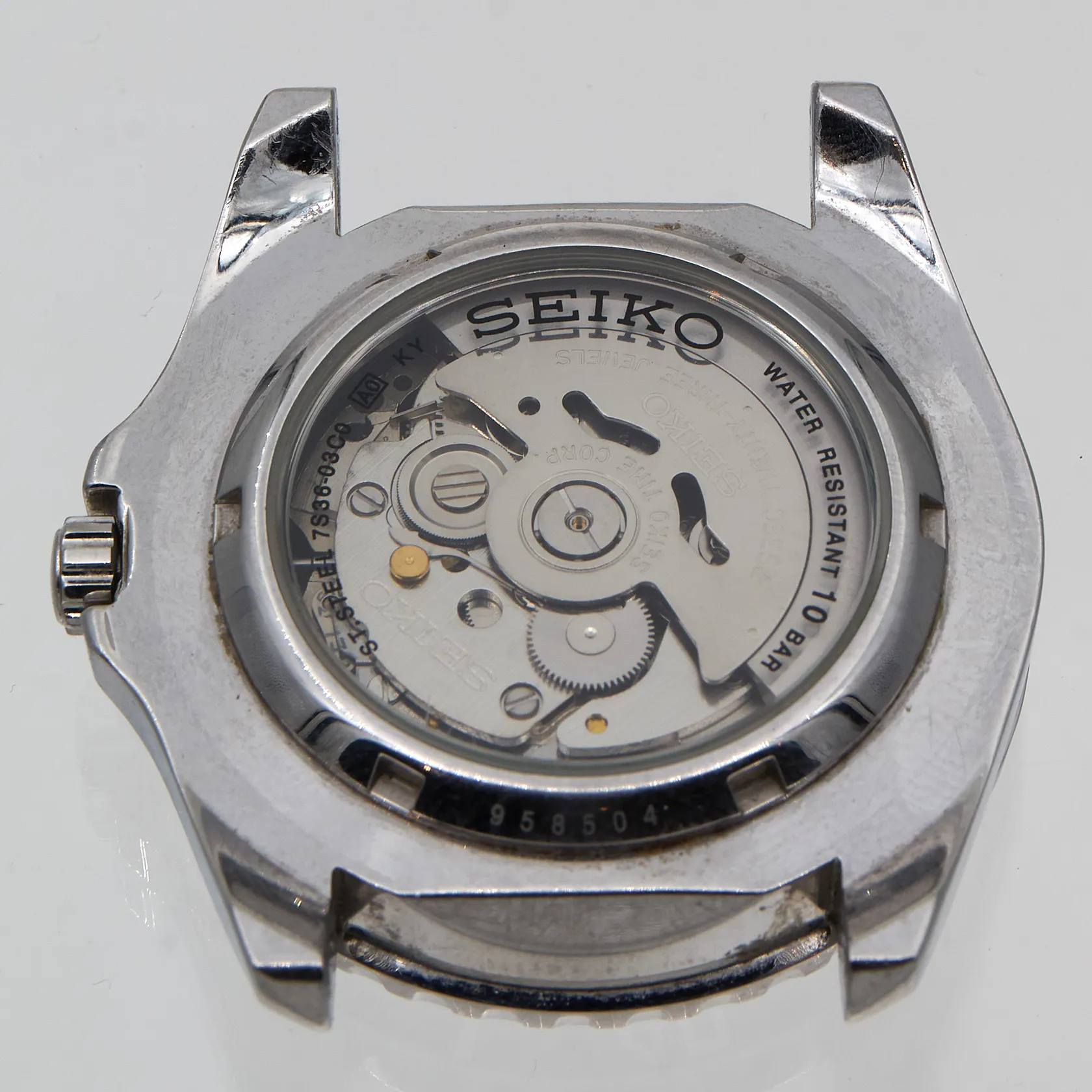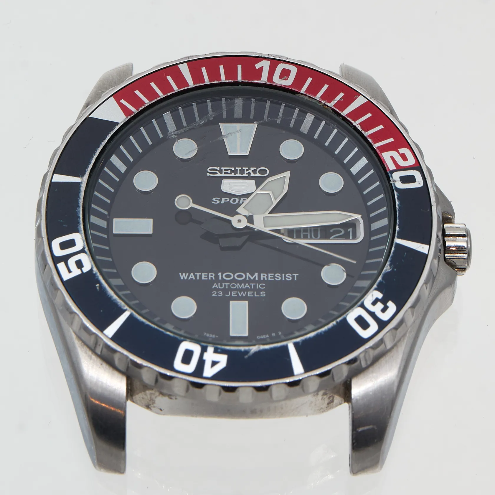 Teräsrannekello, Seiko 5 Sports, automaatti, rungon Ø 42mm, lasissa naarmuja, kehä jumissa, ei ranneketta,