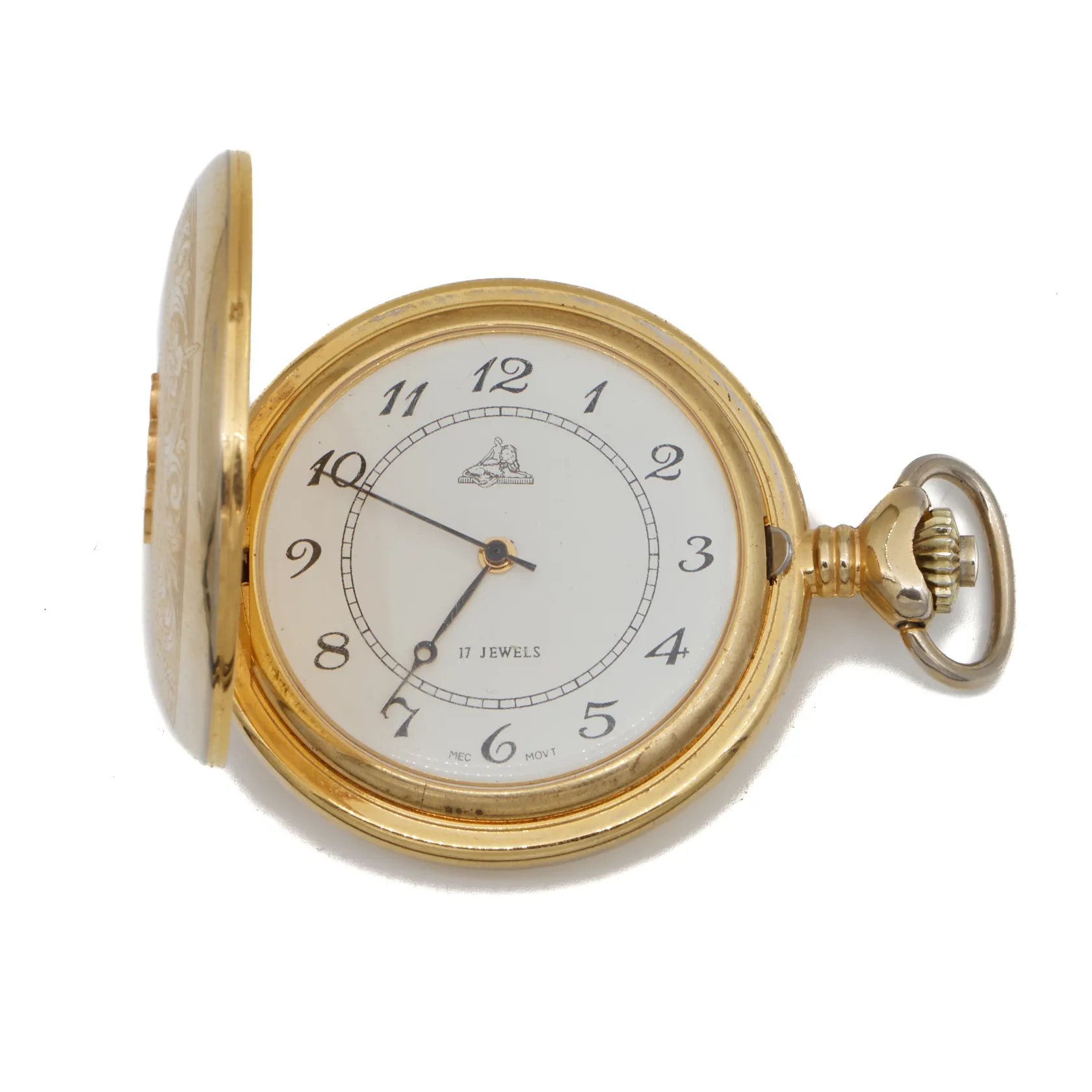 Taskukello Leijona, kaiverrettu, Ø 48mm,17-kivinen, kullattua metallia.