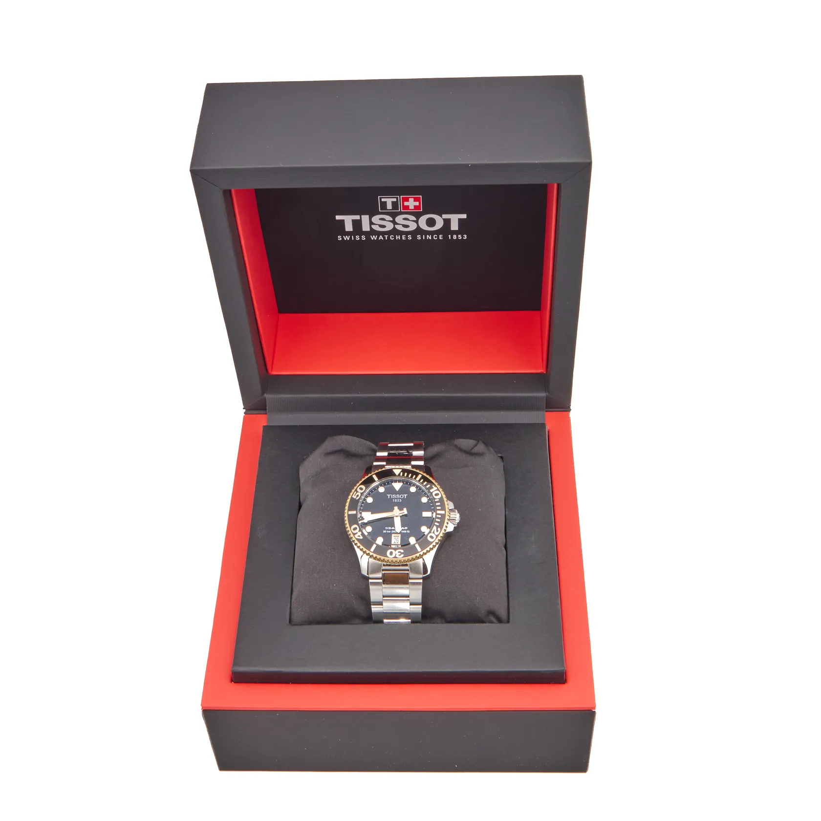 Teräsrannekello Tissot Seastar, quartz;paristo loppunut, ref: T120210A, rungon Ø35.5mm, teräsrannekkeen pituus 185mm, laatikko ja kuitti
