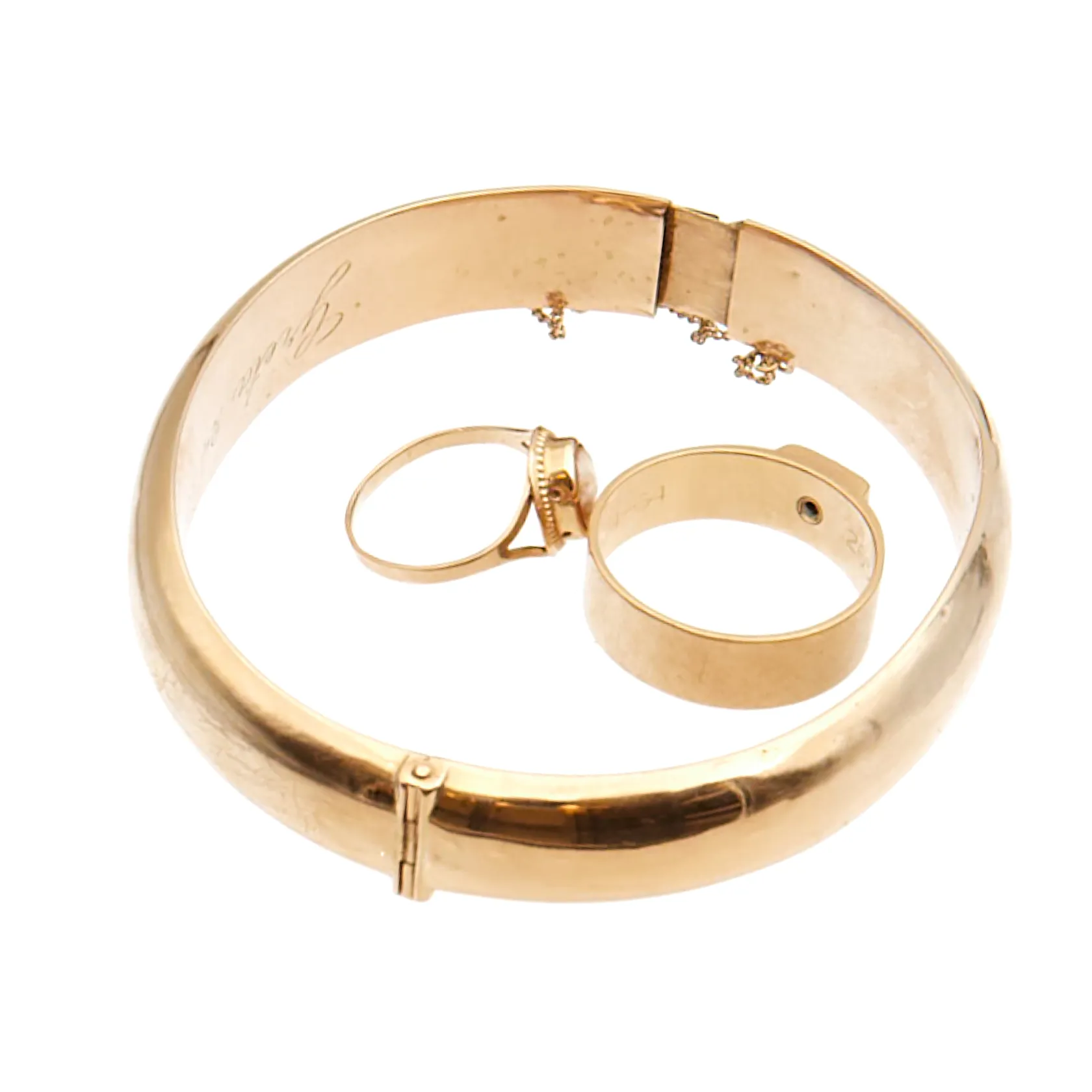 Kuvioitu-rannerengas, Ø 60mm, käytöstä aiheutunutta kulumaa, 585br, Paino: 15,3 g