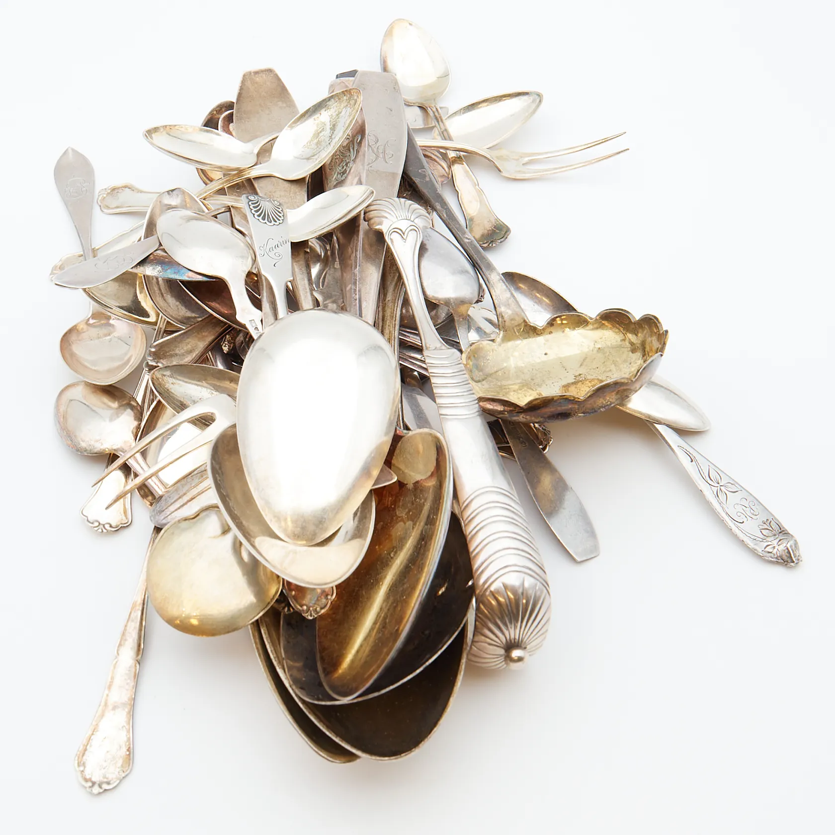Pöytähopeaa, osa kaiverrettuja, osa viallisia, 800-830, Paino: 846,6 g