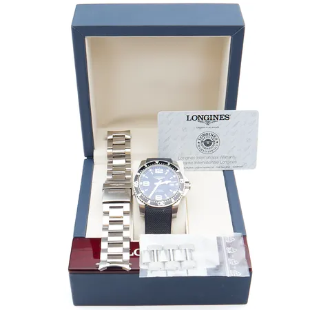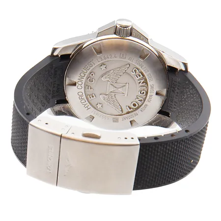 Teräsrannekello Longines Automatic Hydro Conquest, ref. L3.642.4, 45531651, taulun Ø 42mm, kumirannekkeen pituus 170mm, alkuperäinen ranneke mukana, Latikko ja takuukortti, ostettu 31.5.2017.