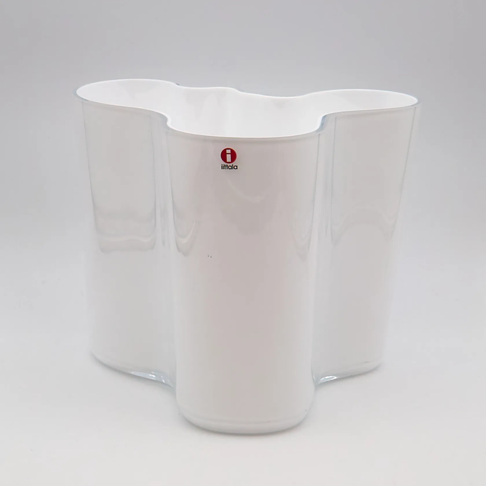 Aalto-maljakko Iittala, valkoinen, korkeus 160mm, laserkaiverrus.