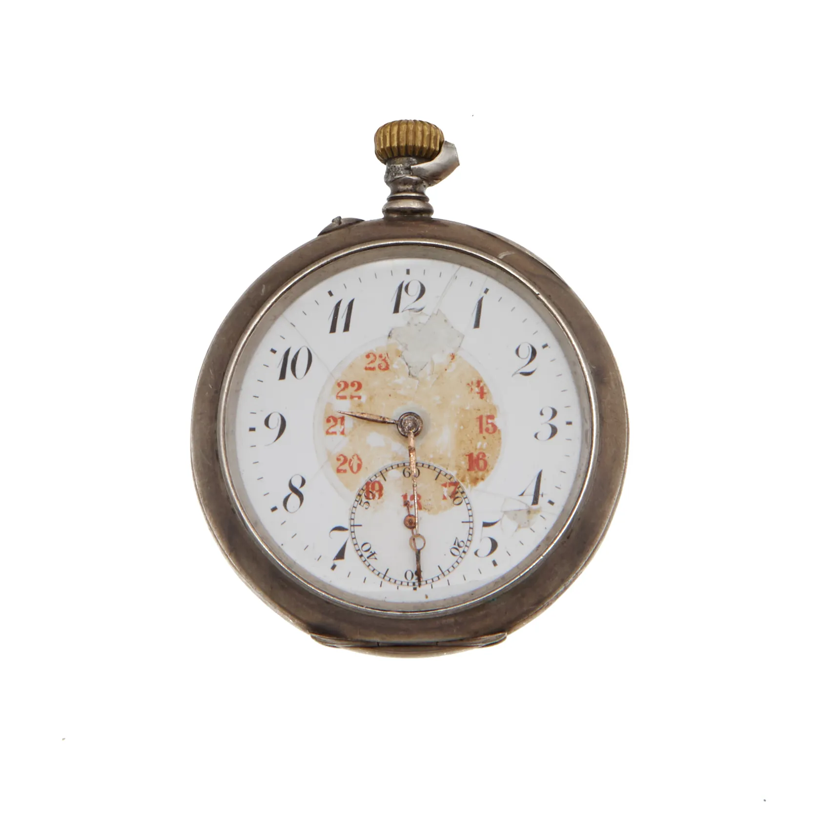 Viallinen hopeataskukello, lasi puuttuu, taulu viallinen, välikuori metallia, kaiverrettu, Ø 65mm, 800br, Paino: 116,9 g