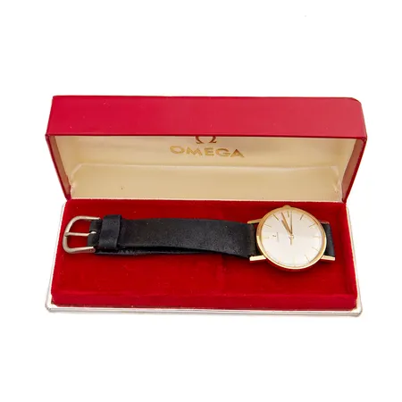 Kultarannekello Omega, Ø 32mm, sarjanumero 19279120, kaliberi 600, 17-kivinen, manuaalivetoinen, vaihtoranneke metallia, lasissa pieniä käytön jälkiä, alkuperäinen rasia, 585br, Paino: 30,3 g
