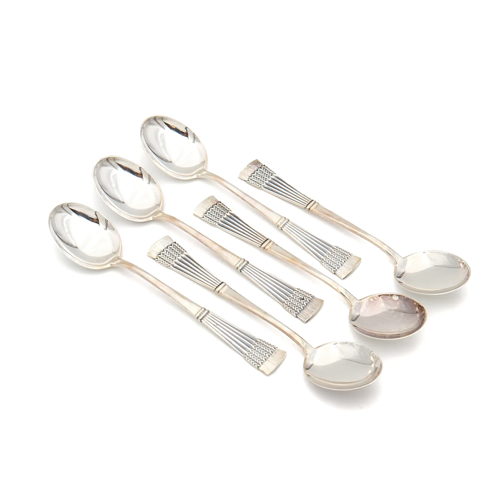 Kuusi kahvilusikkaa, Tähkä, pituus 114mm, kaiverrettu, 830, Paino: 76,9 g