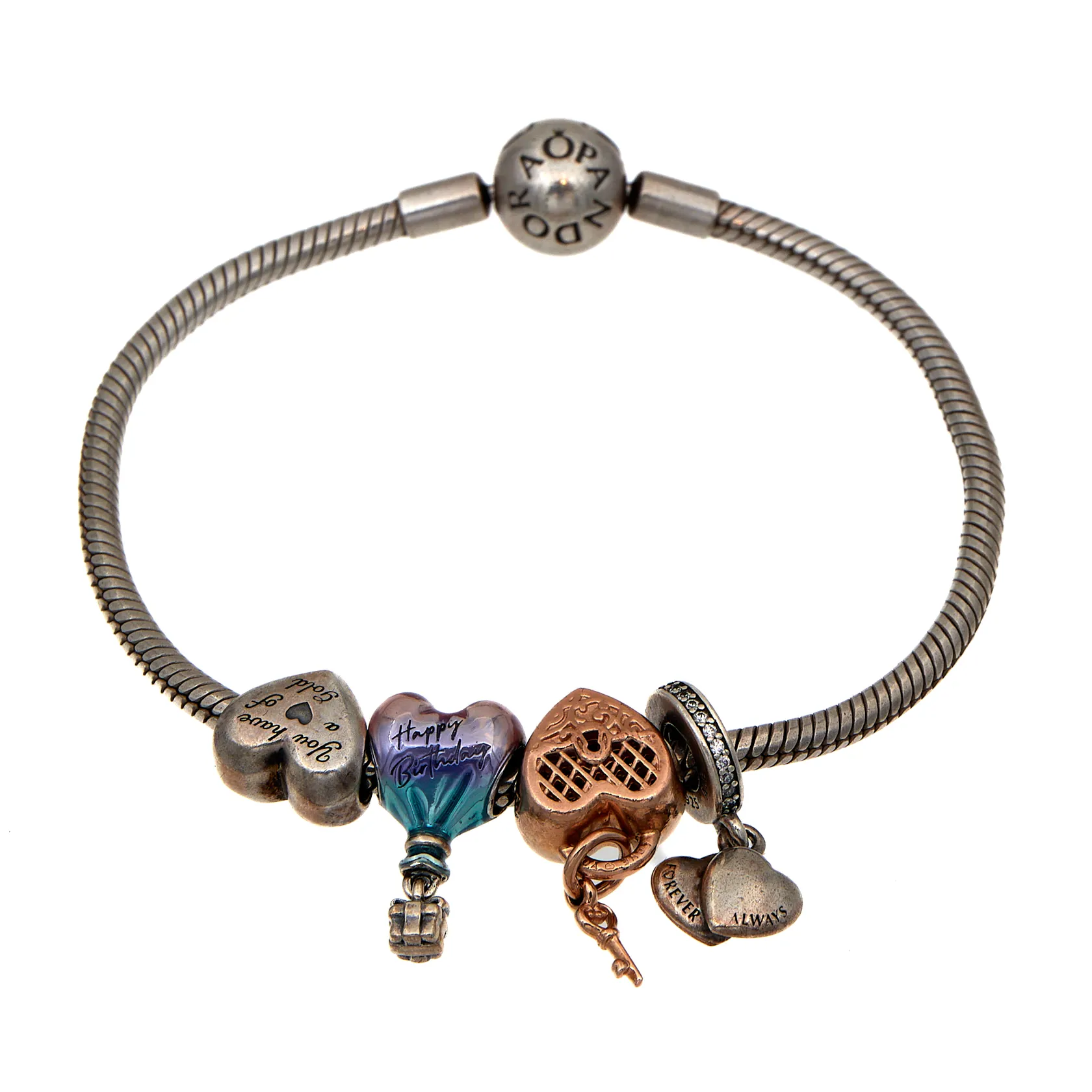 Pandora-rannekoru, neljä helaa, pituus 190mm, rasia, 925, Paino: 25,2 g