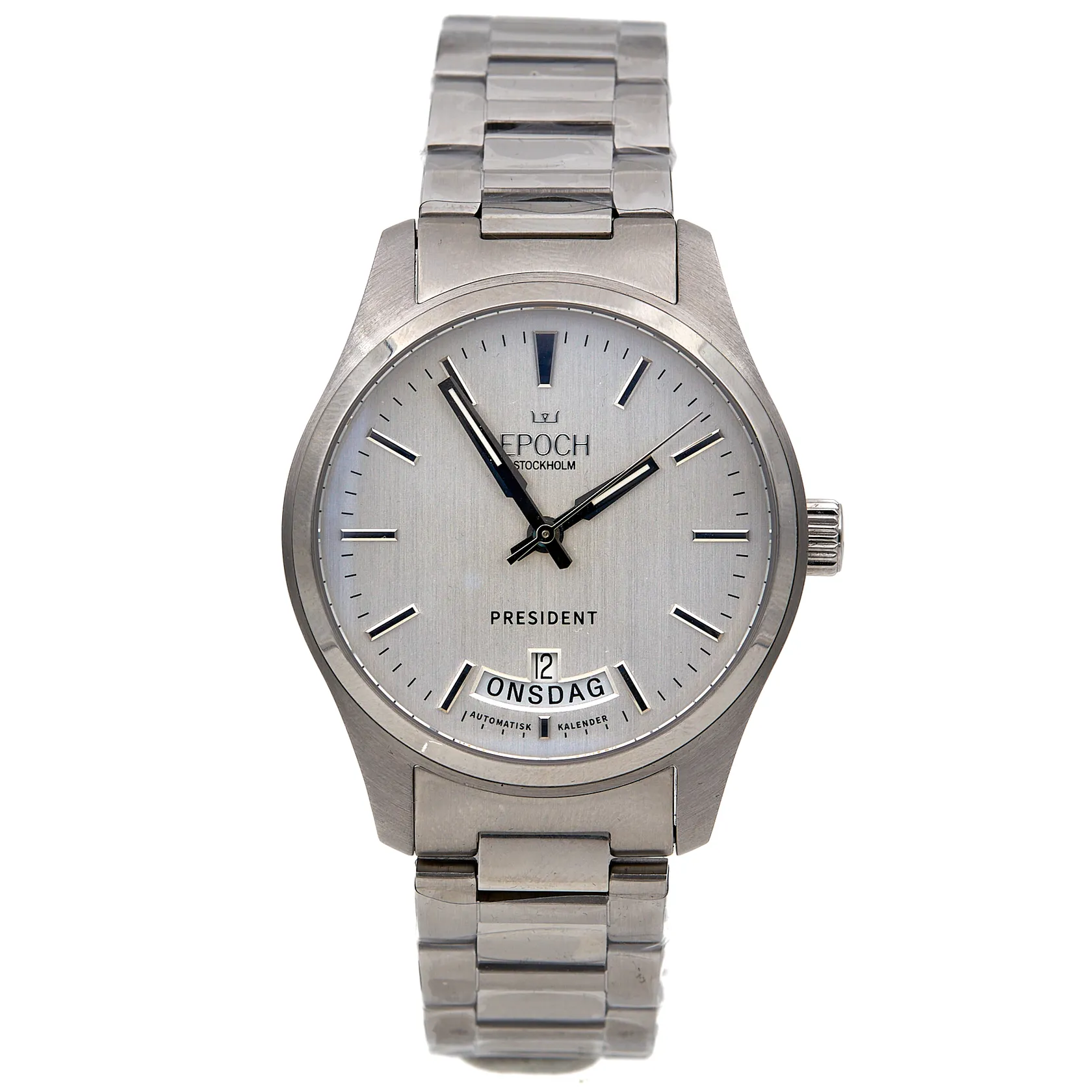 Teräsrannekello, Epoch President, automaatti, kalenteri, Ø 40mm, pituus 200mm, kaiverrettu, ohjekirja ja laatikko. Paino: 0 g
