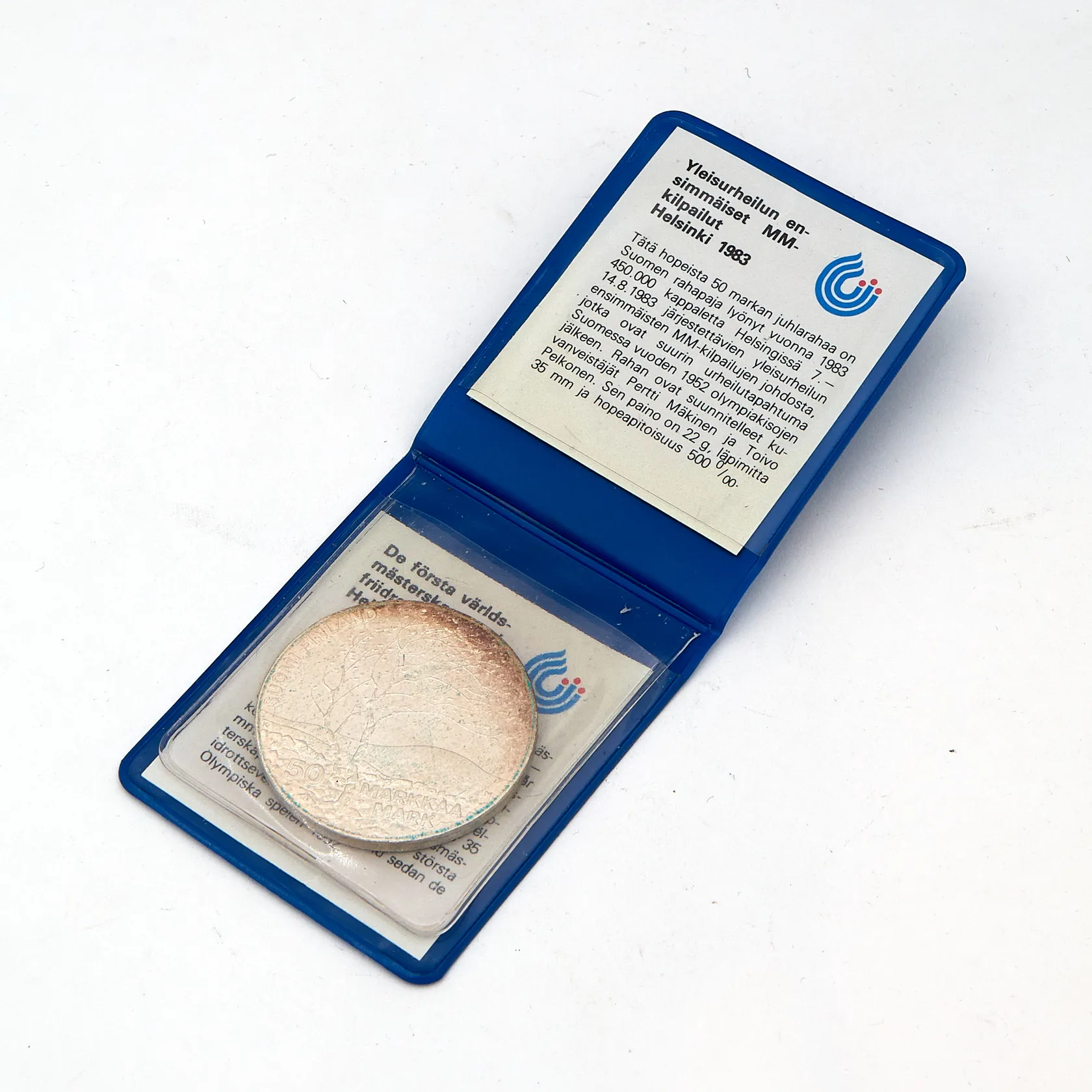 Juhlaraha, nimellisarvo 50 markkaa, Suomi, MM 1983, 500, Paino: 22,2 g