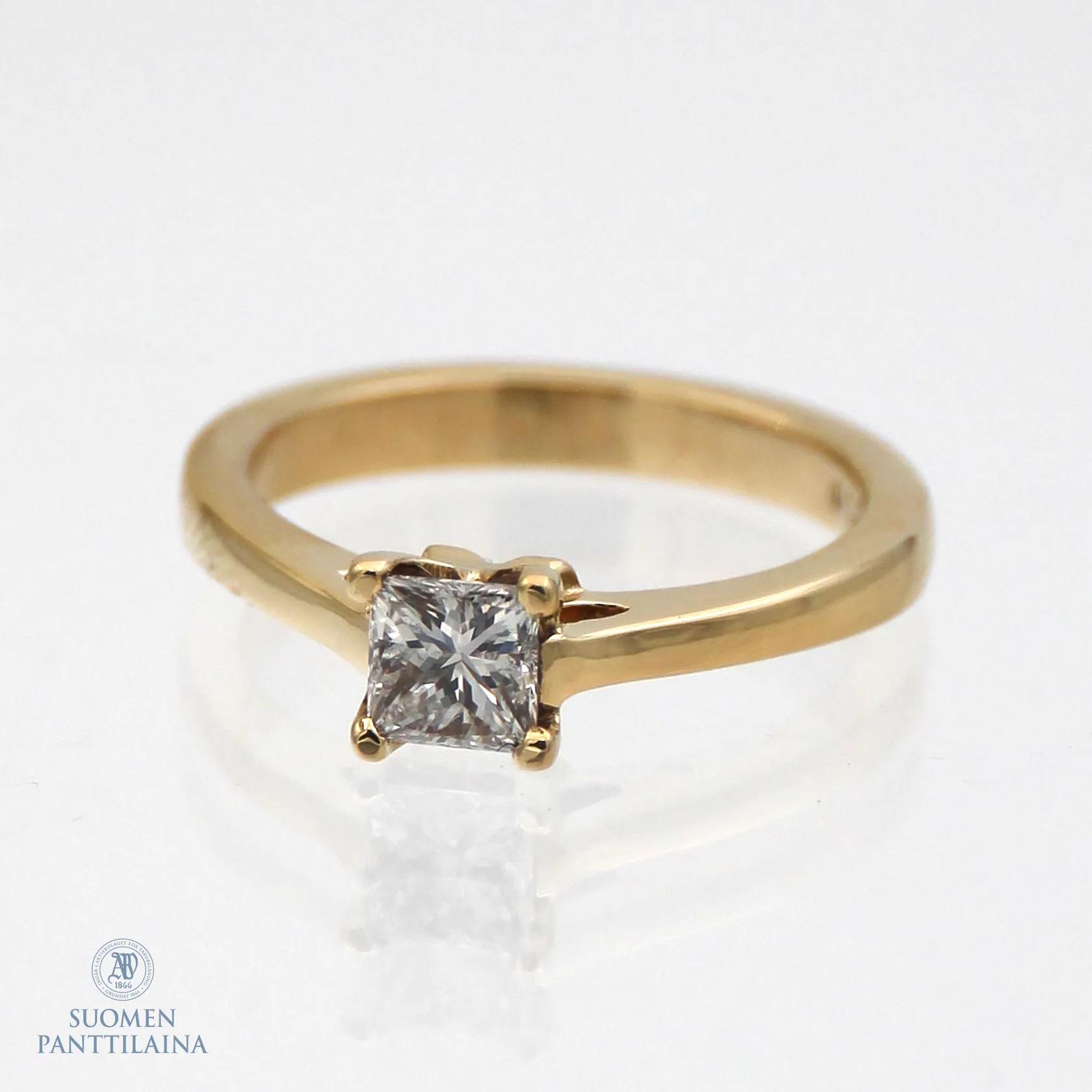 Tiamanttisormus, 1xn.0.50ct, princess-hionta, koko 16¾, 750, Paino: 5 g