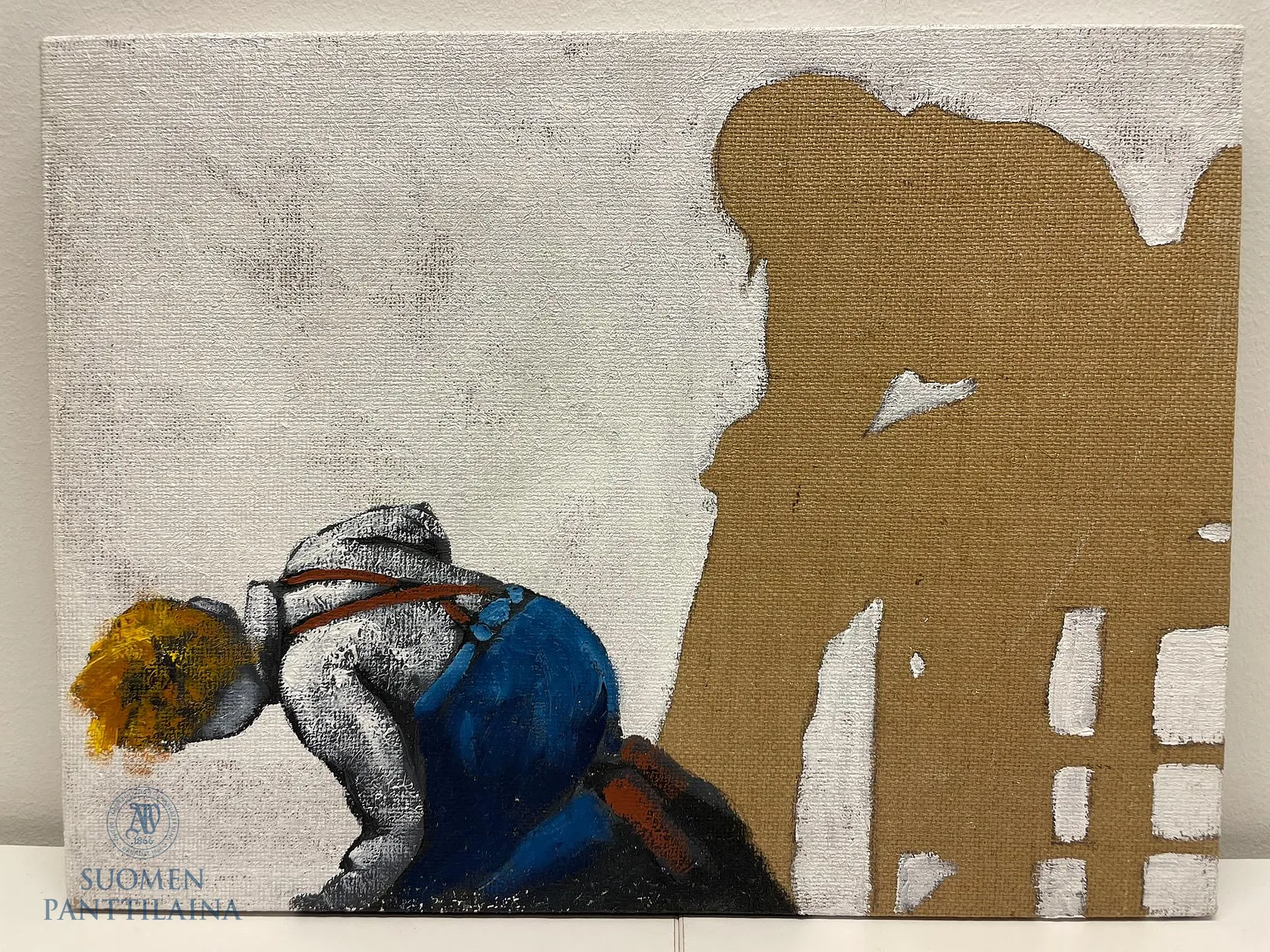 Öljyvärimaalaus juuttikankaalle, Hannu Palosuo, 179/2014, mitat 40x30cm, signeerattu. Paino: 0 g