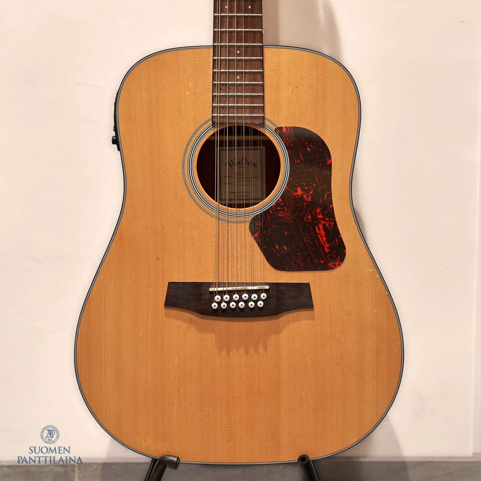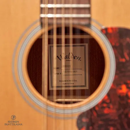 Huom! Tuote on nähtävissä Hakaniemen Pantissa. 12-kielinen elektoakustinen kitara Walden, malli D552E, sarjanumero 122050161, kolhuja lavassa, jälkiä kopan etu- ja takapuolella, mukana kova laukku Paino: 0 g