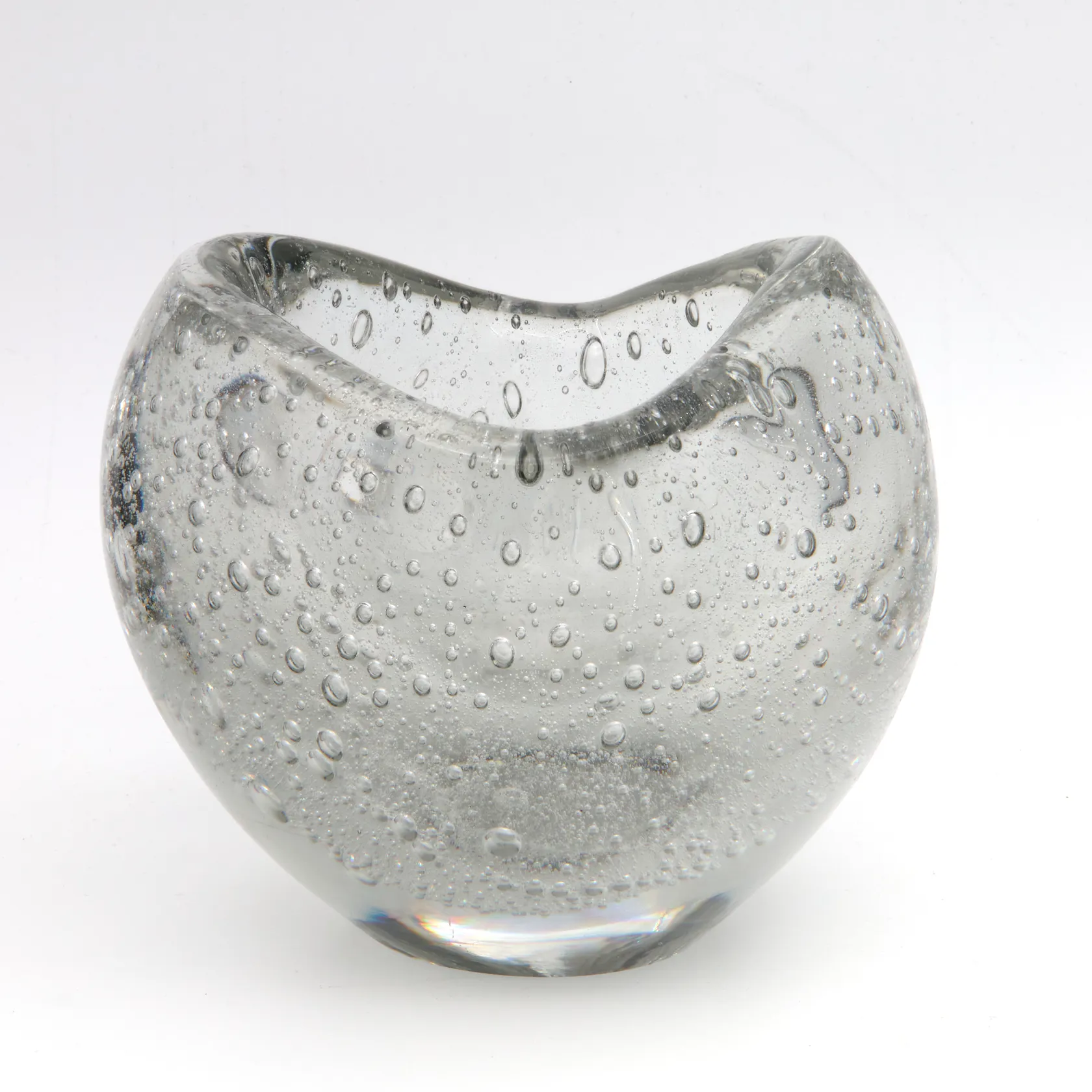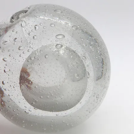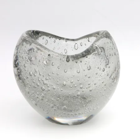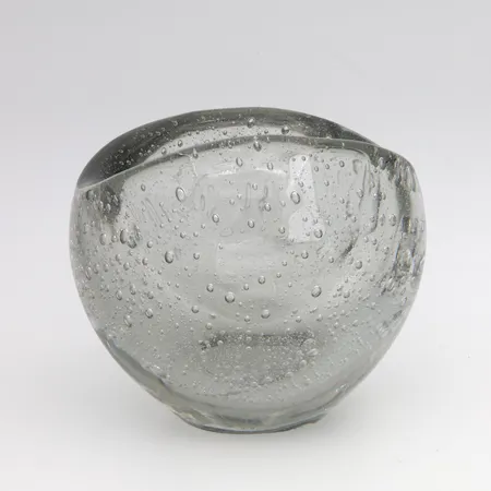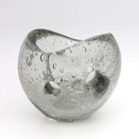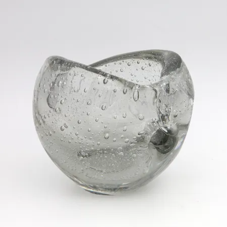 Taide-esine Iittala, Hiidenhelmi, signeerattu Timo Sarpaneva Iittala -58, korkeus 130mm, pohjassa siirtelyjälkiä ja sivussa naarmuja, vapaasti muotoiltu ja driivattu soodakuplalasi Paino: 0 g