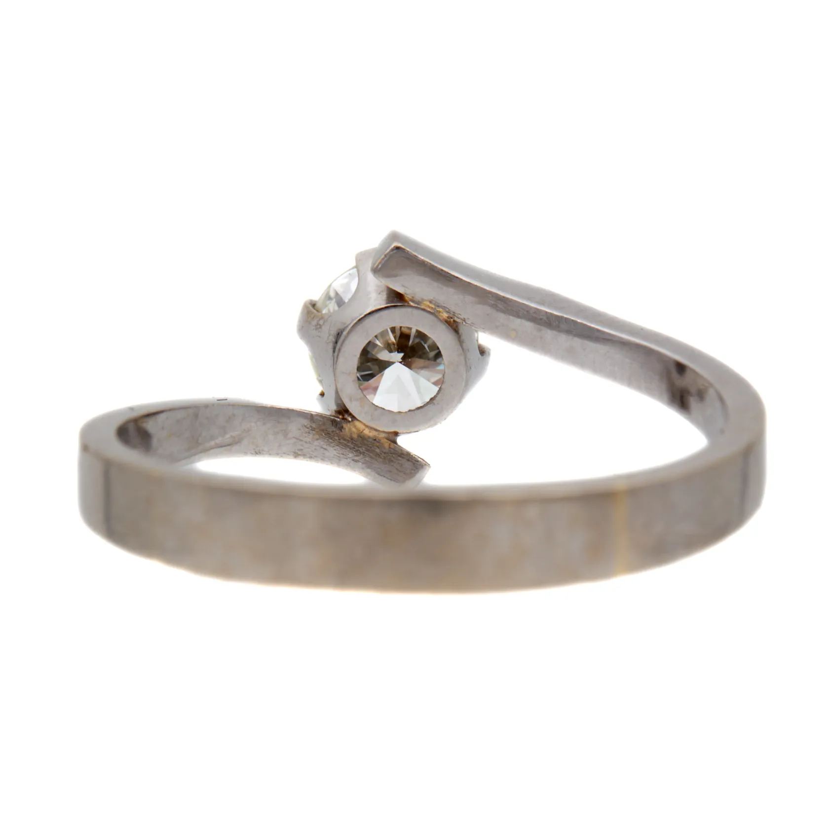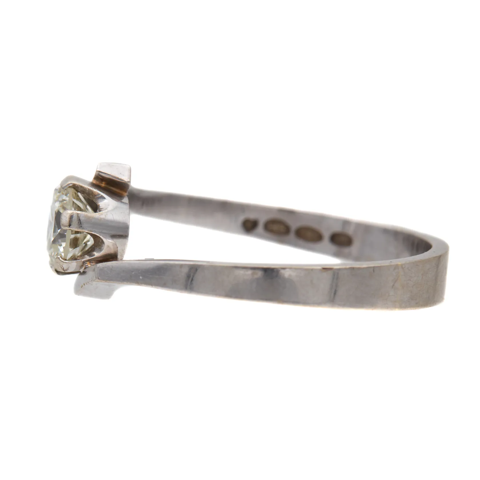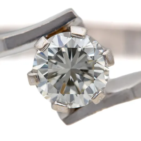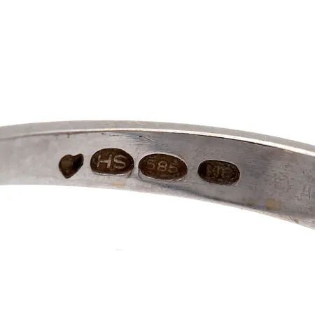 Timanttisormus 1xn.0.64ct, koko 19, tekijänleima Medaljonki Oy, vuodelta 1990, 585 valkokulta, Paino: 3,2 g