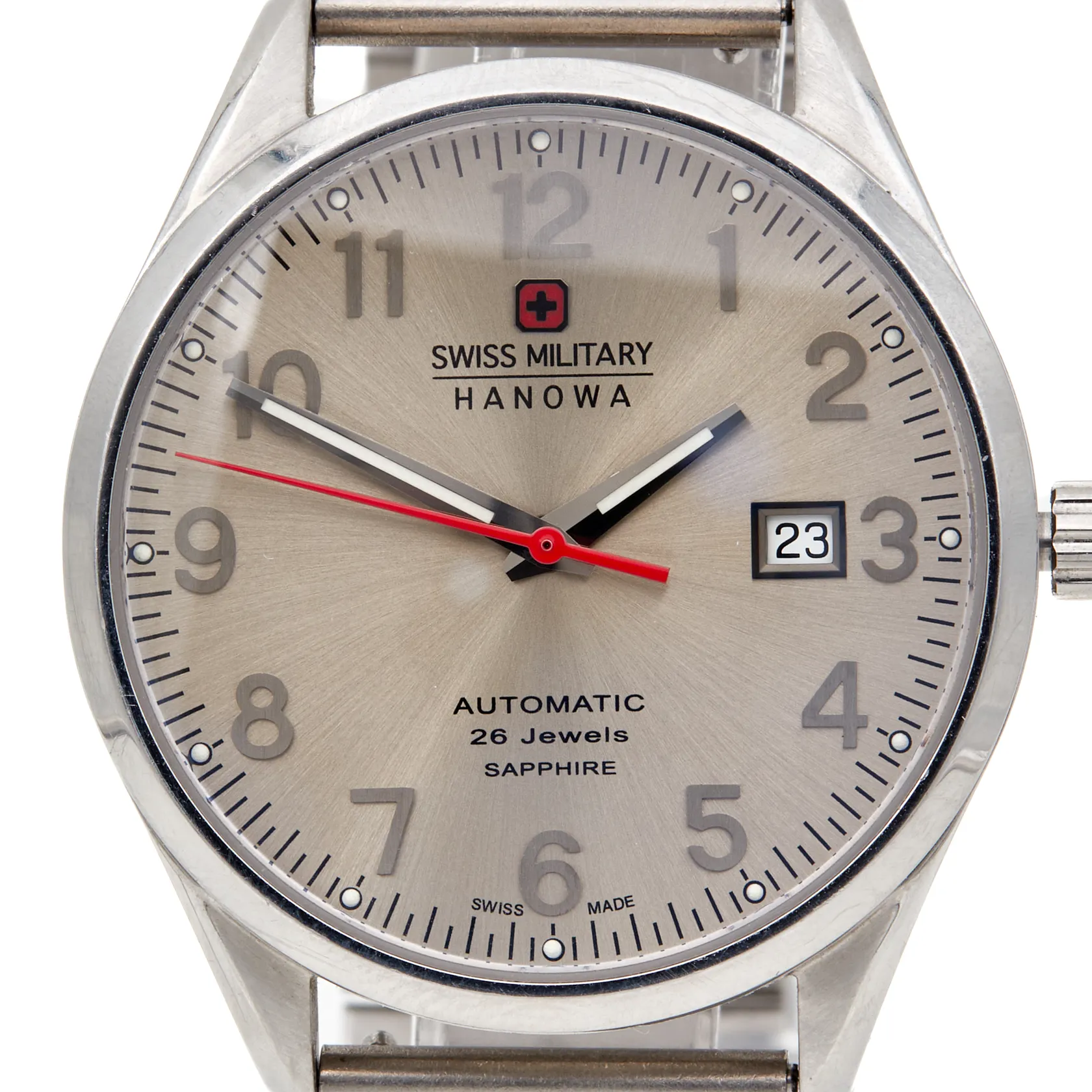 Teräsrannekello Swiss Military Hanowa, automaatti, 5-4287/5287, rungon Ø 40mm, rungossa käytön jälkiä, rannekkeen pituus 180mm Paino: 0 g
