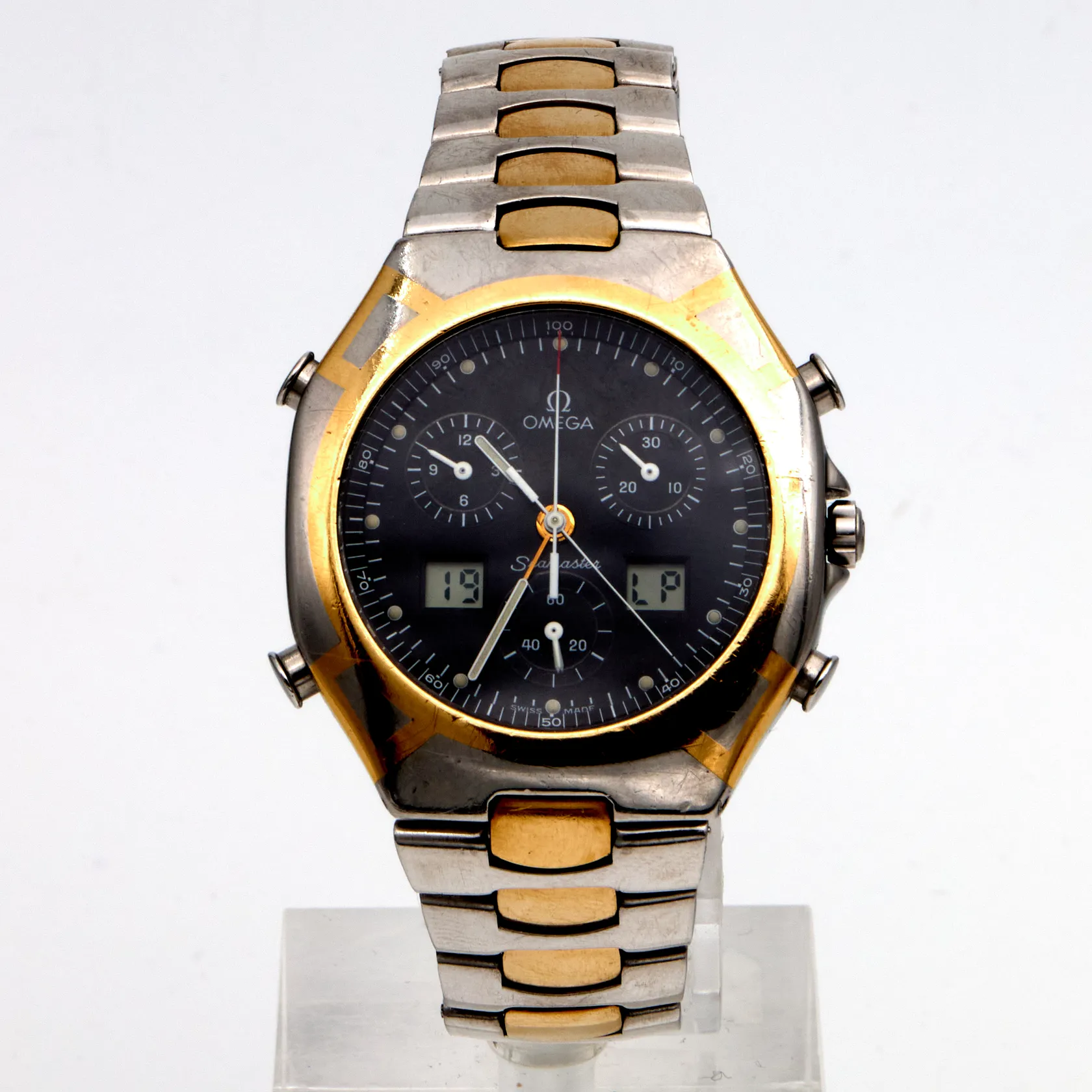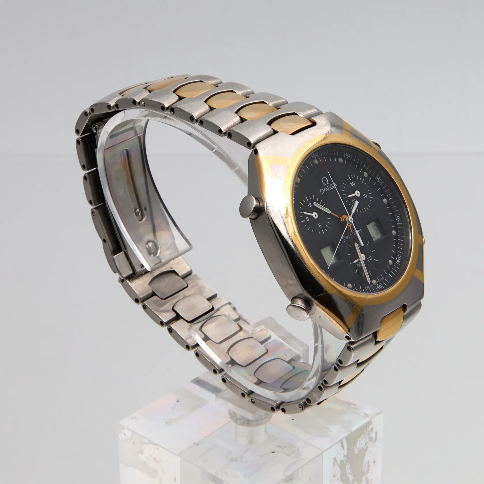 Teräsrannekello Omega, Polaris, Olympic games 1988, ref: 386.1231, Quartz, taulun Ø 38mm, ajan mukaista kulumaa, rannekkeen pituus 200mm Paino: 0 g