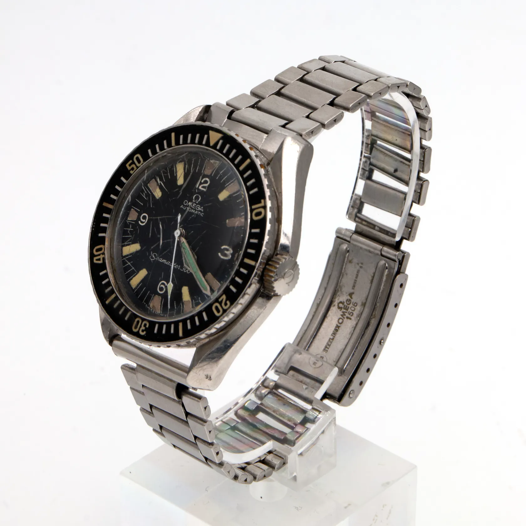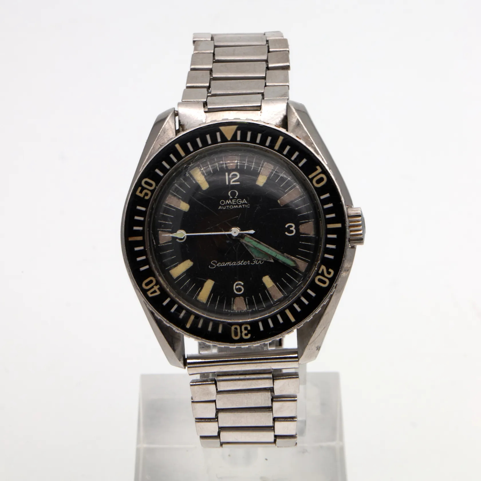 Teräsrannekello Omega, Seamaster 300, ref.165.024, taulun Ø 42mm, rannekkeen pituus 200mm, lasissa naarmuja, rannekkeessa kulumia Paino: 0 g