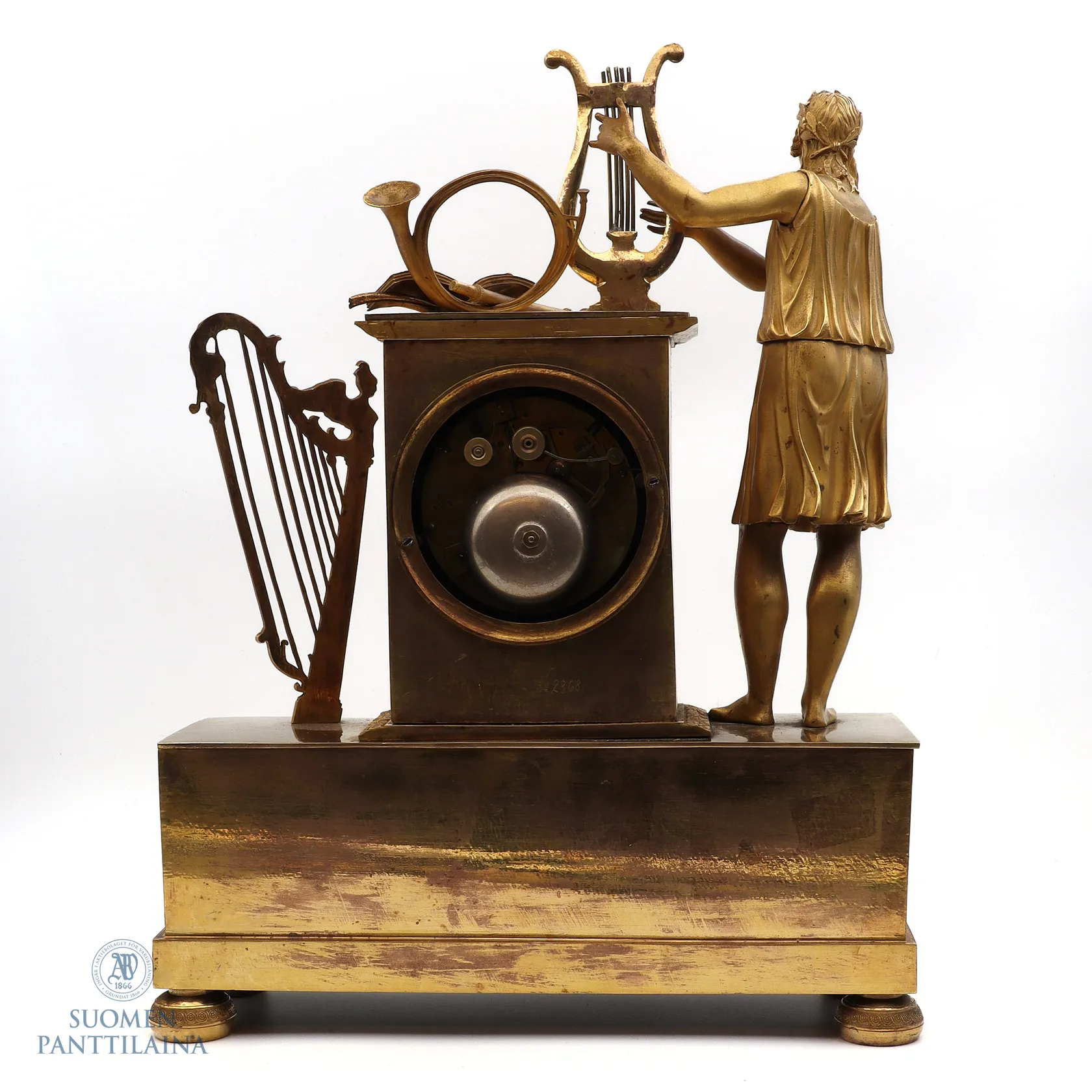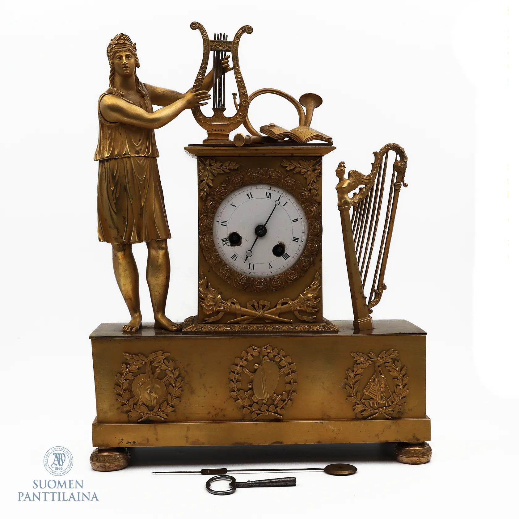 Pöytäkello, korkeus 35cm, leveys 29cm, heiluri ja vetoavain, arviolta 1800-luvun puoliväli, Ranska, suositellaan huoltoa. Paino: 0 g
