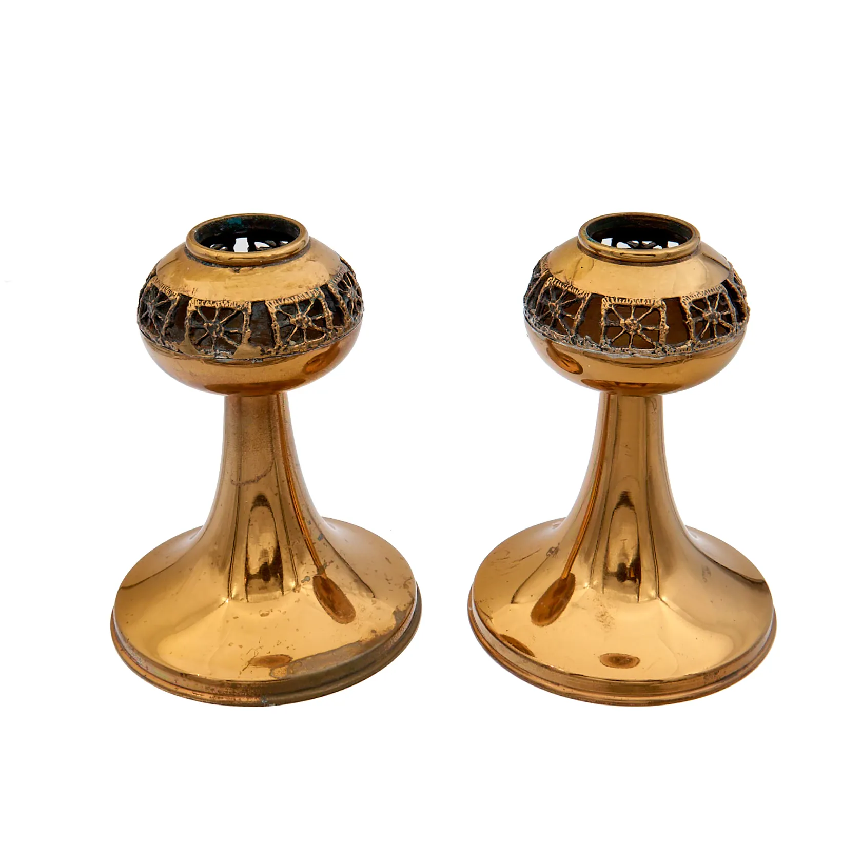 Kynttilänjalat Turun Hopea, Pitsi, design Pentti Sarpaneva, korkeus 95mm, Ø 50-70mm, käytön jälkiä, pronssia. Paino: 0 g