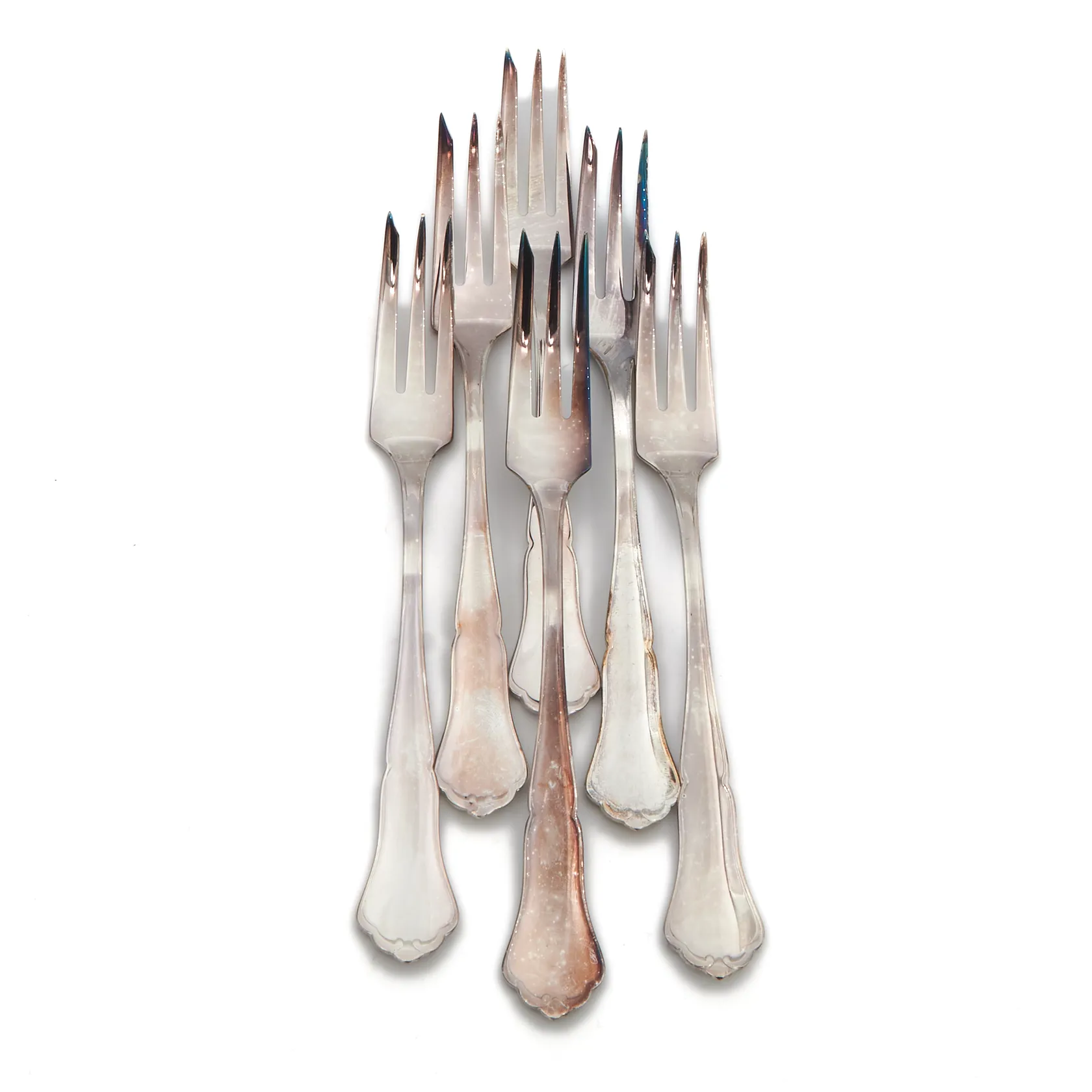 Kuusi leivoshaarukkaa, Chippendale, pituus 150cm, 830, Paino: 150,4 g