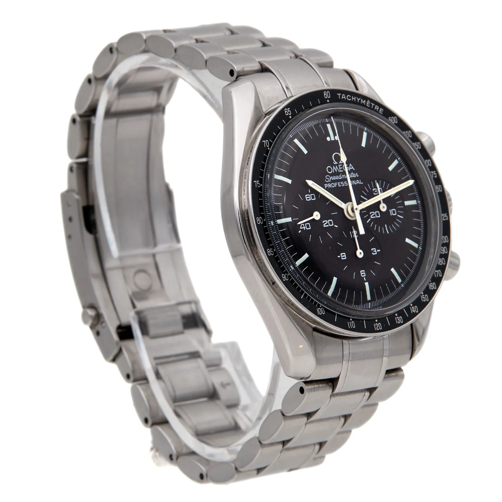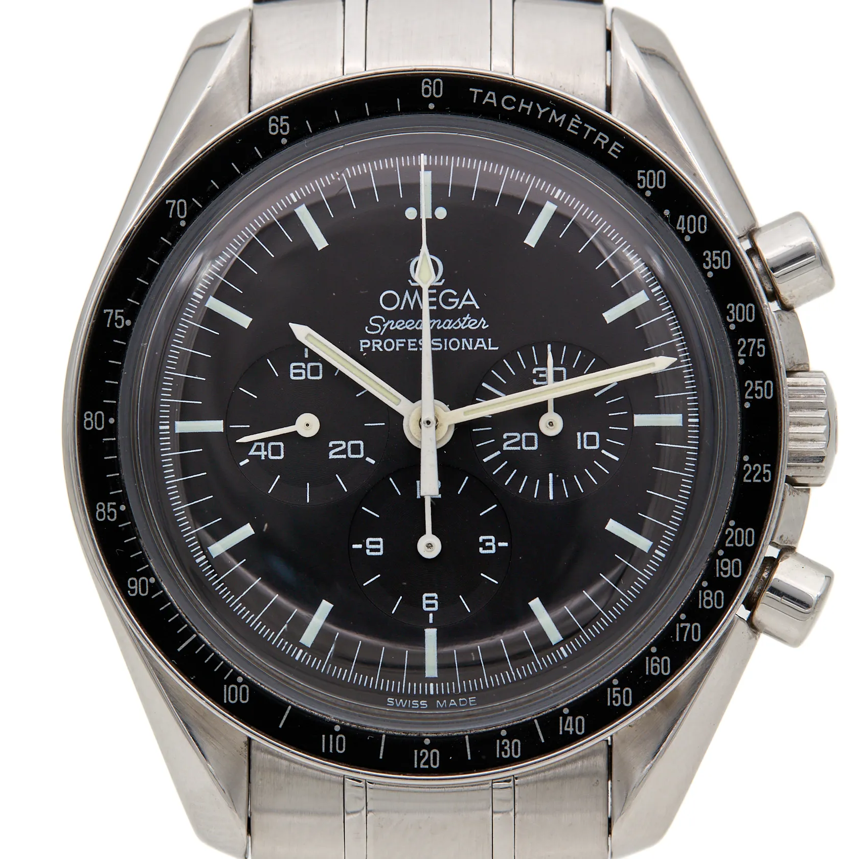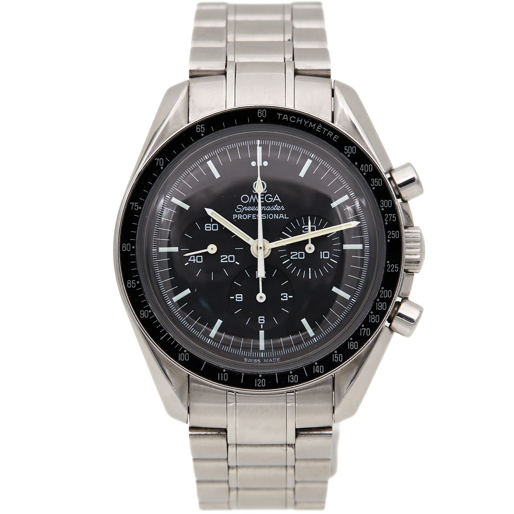 Teräsrannekello Omega Speedmaster, mekaaninen, rungon Ø 42mm, cal.1861, sr:77128866, hihnan pituus 195mm, kuorentunniste: 145.0022 345.0022. *Tuote nähtävissä Kaivopihan konttorissa* Paino: 0 g