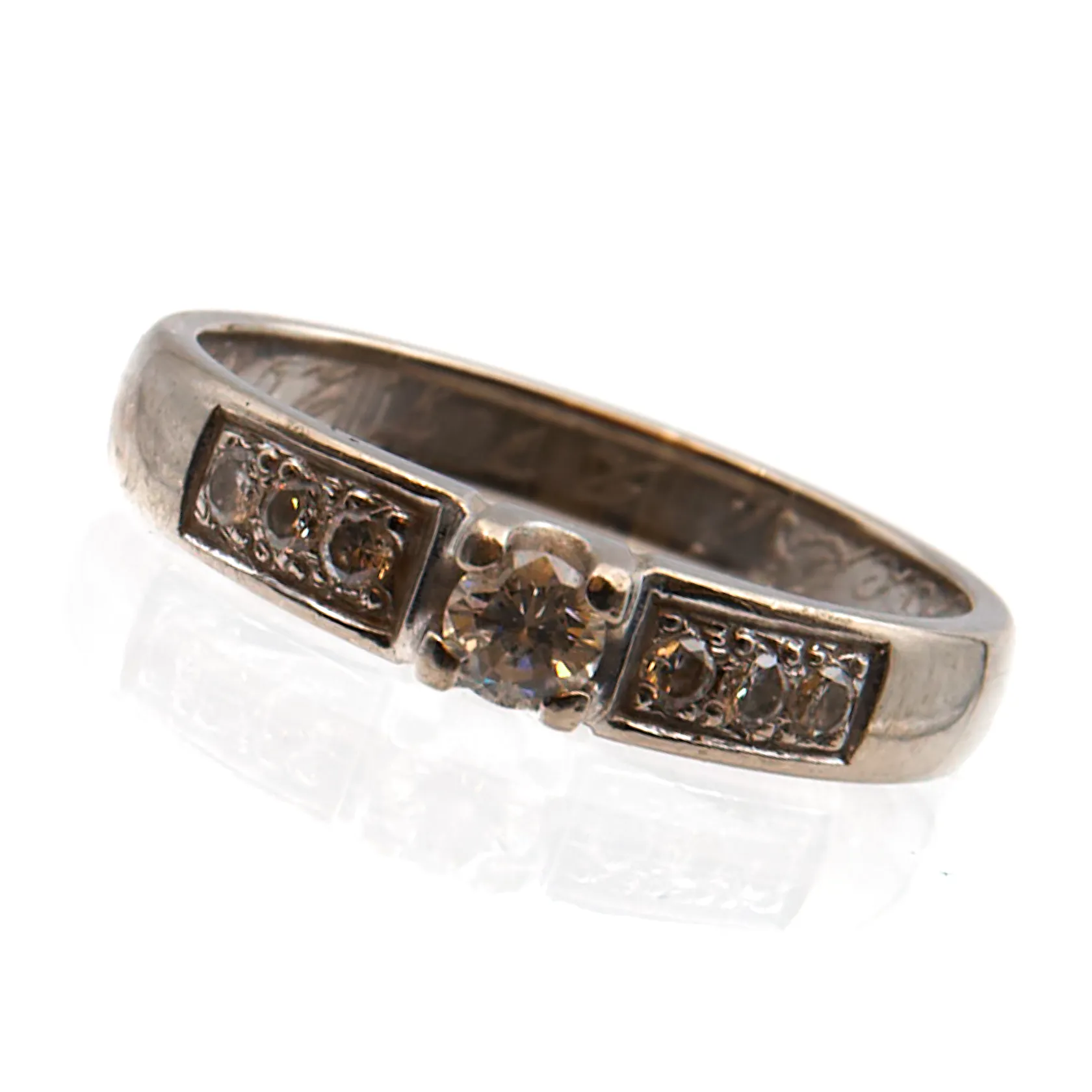 Timanttisormus 6xn.0.01ct 1xn.0.10ct, koko 16, kaiverrettu, 585 valkokulta, Paino: 2,8 g