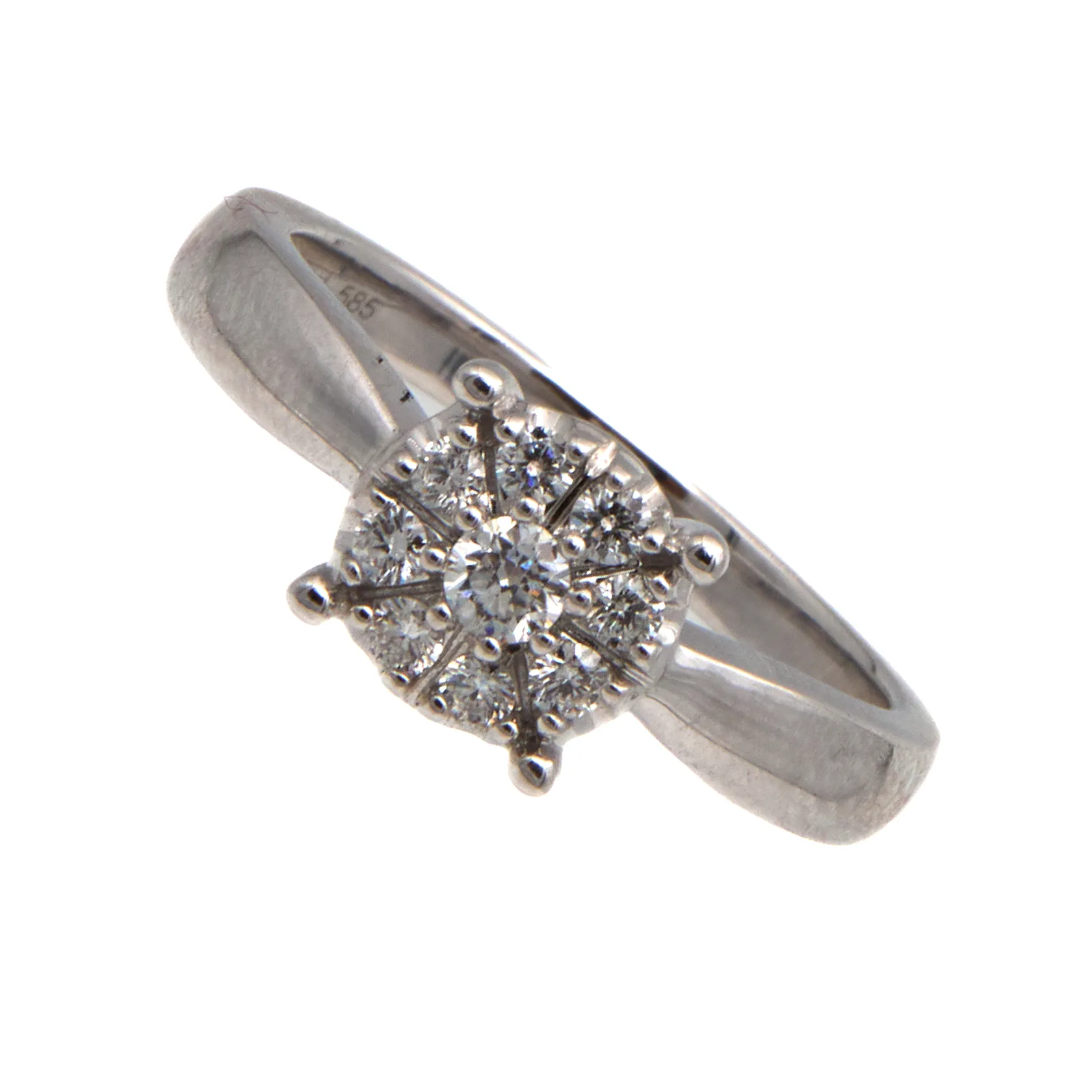 Timanttisormus 1xn.0.04ct 8xn0.01ct, koko 16, 585 valkokulta, Paino: 3,7 g