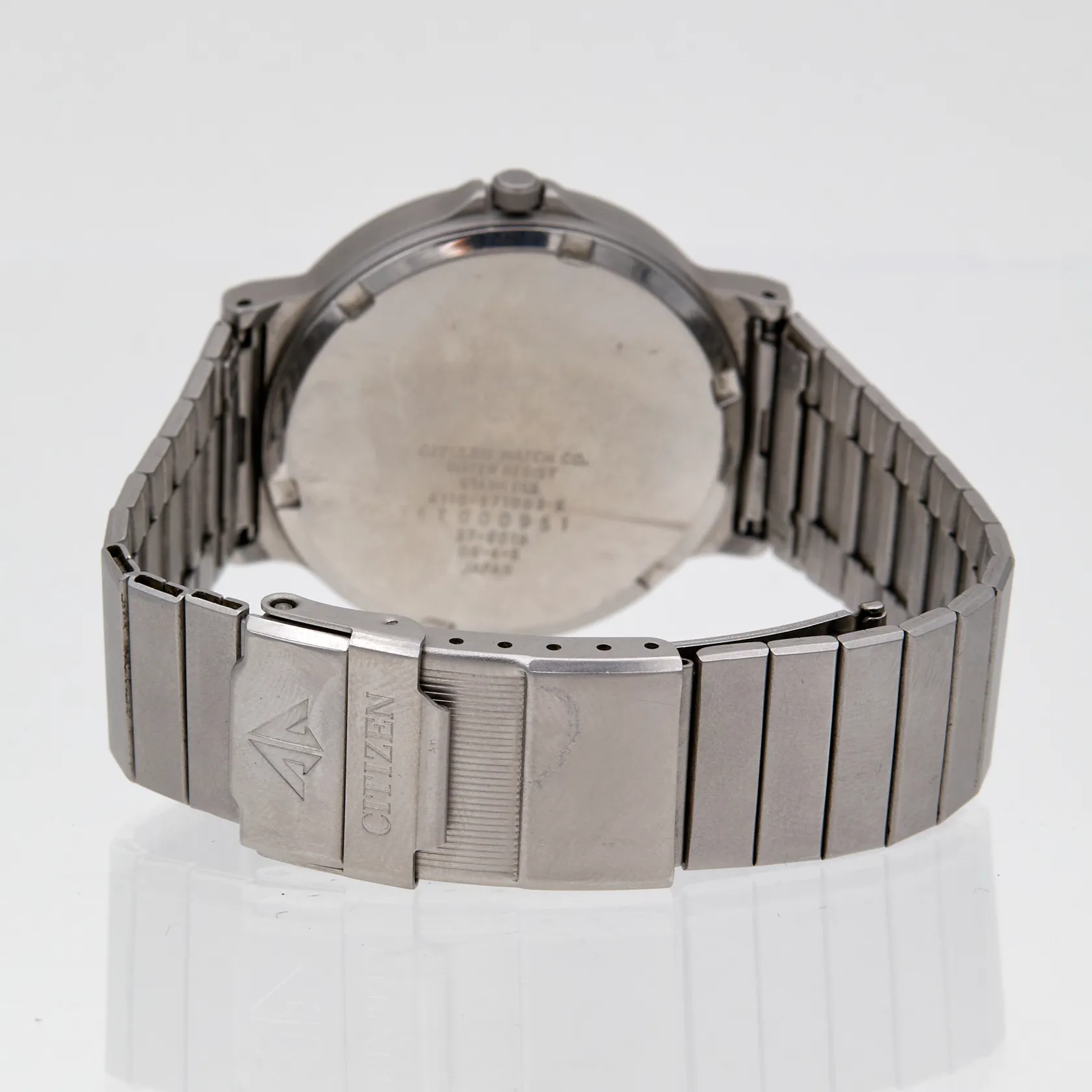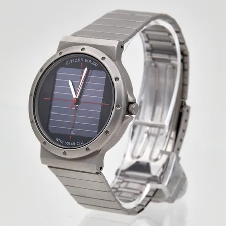 Teräsrannekello, Citizen, quartz, W.R.100, Solar 4110, rungon Ø35mm, rannekkeen pituus 175mm, lasissa pieniä naarmuja Paino: 0 g