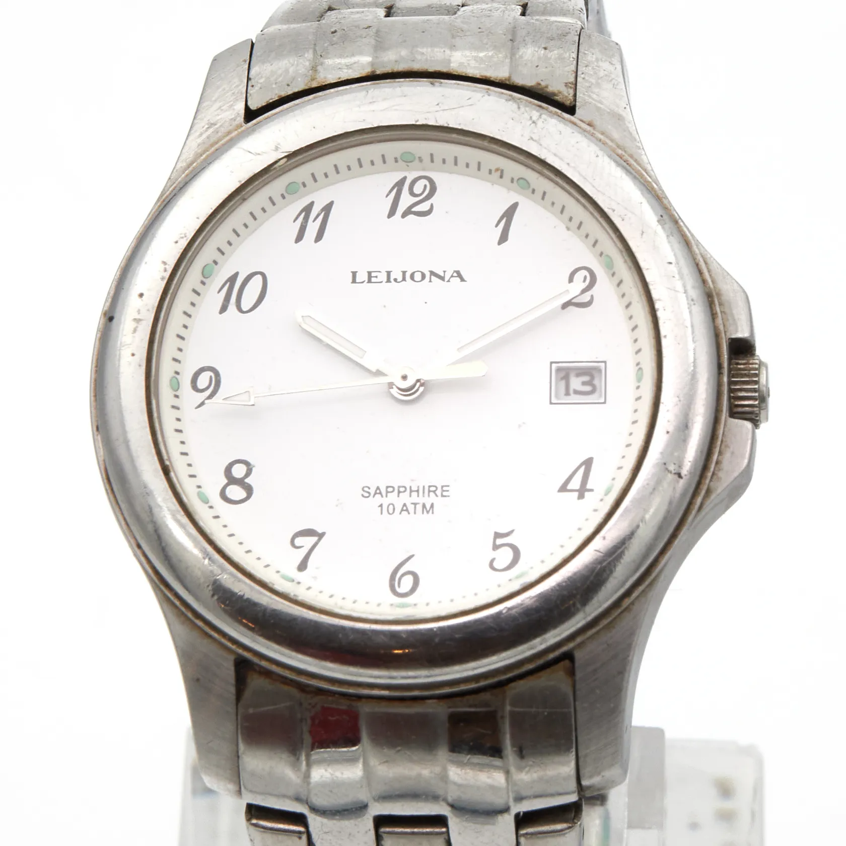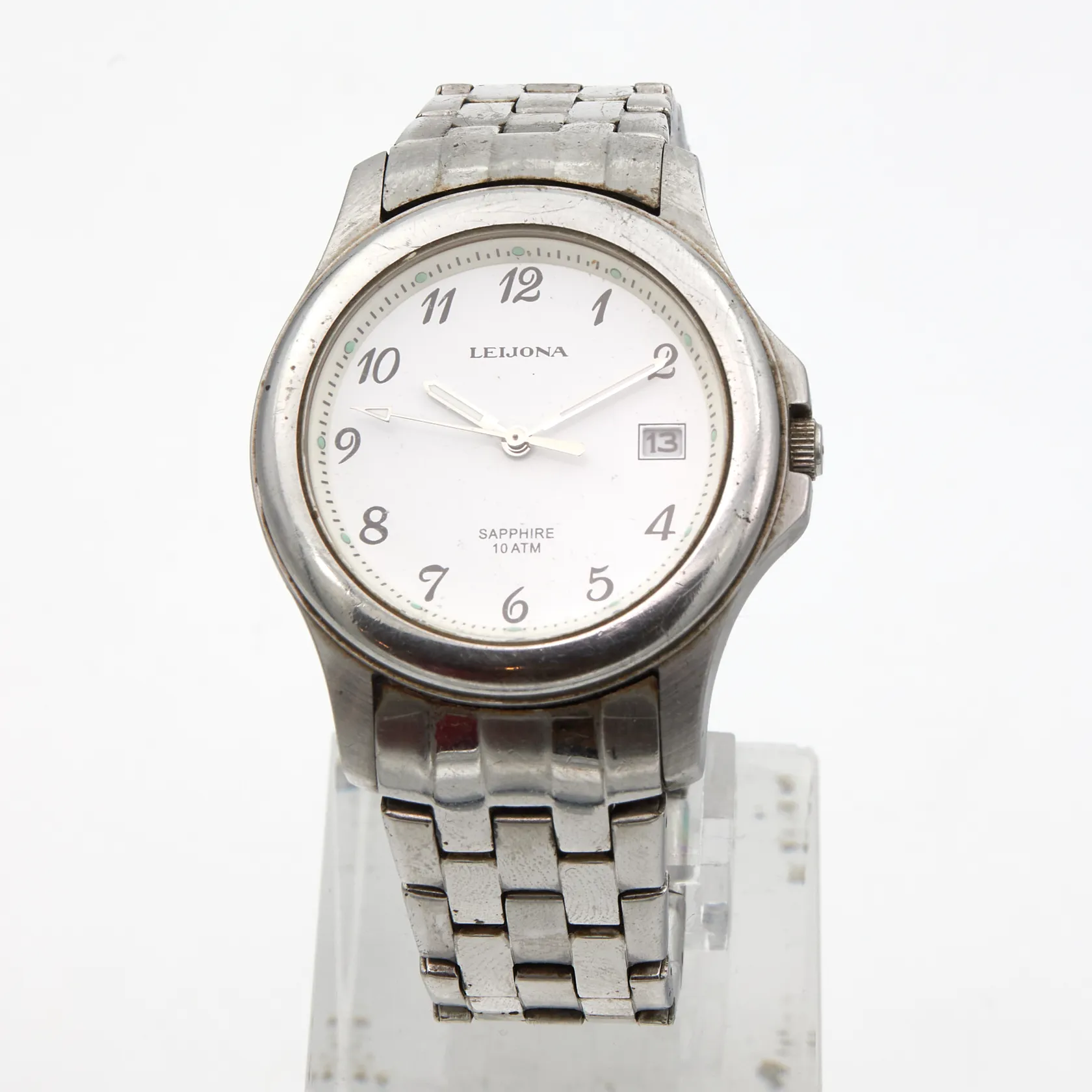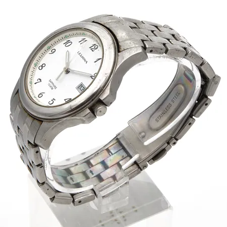 Teräsrannekello Leijona, quartz, 10ATM, ref 5012-1587, käytön jälkiä, lasissa naarmuja, rungon Ø38mm, teräsrannekkeen pituus 190mm, Paino: 0 g
